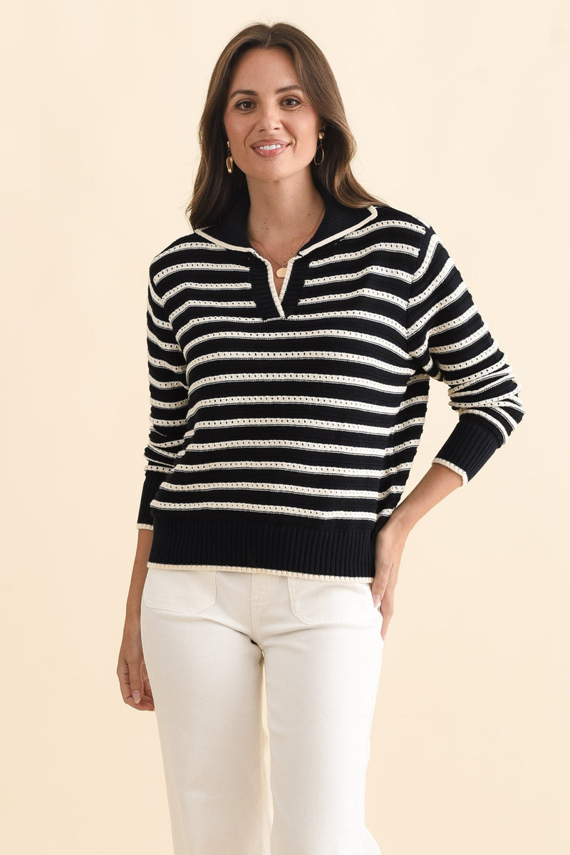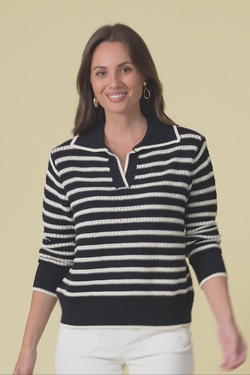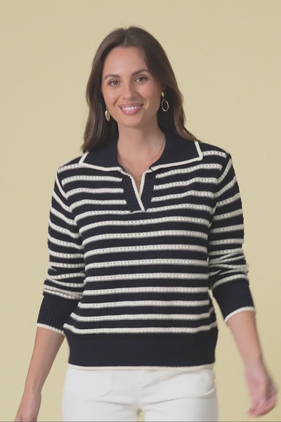 Aberdeen Navy Stripe Cotton Knit Sweater