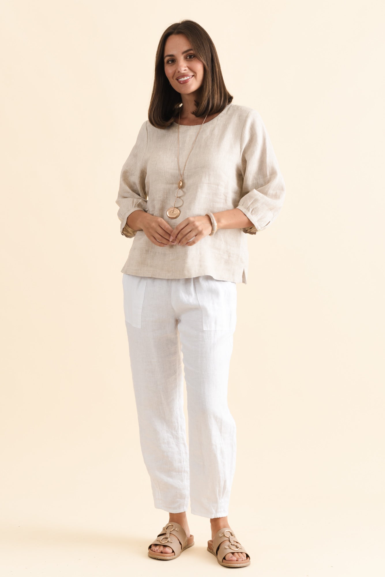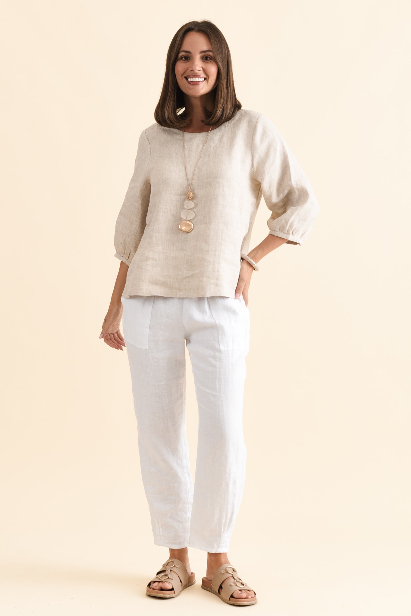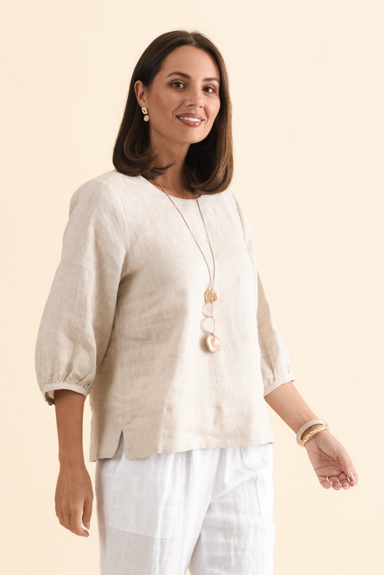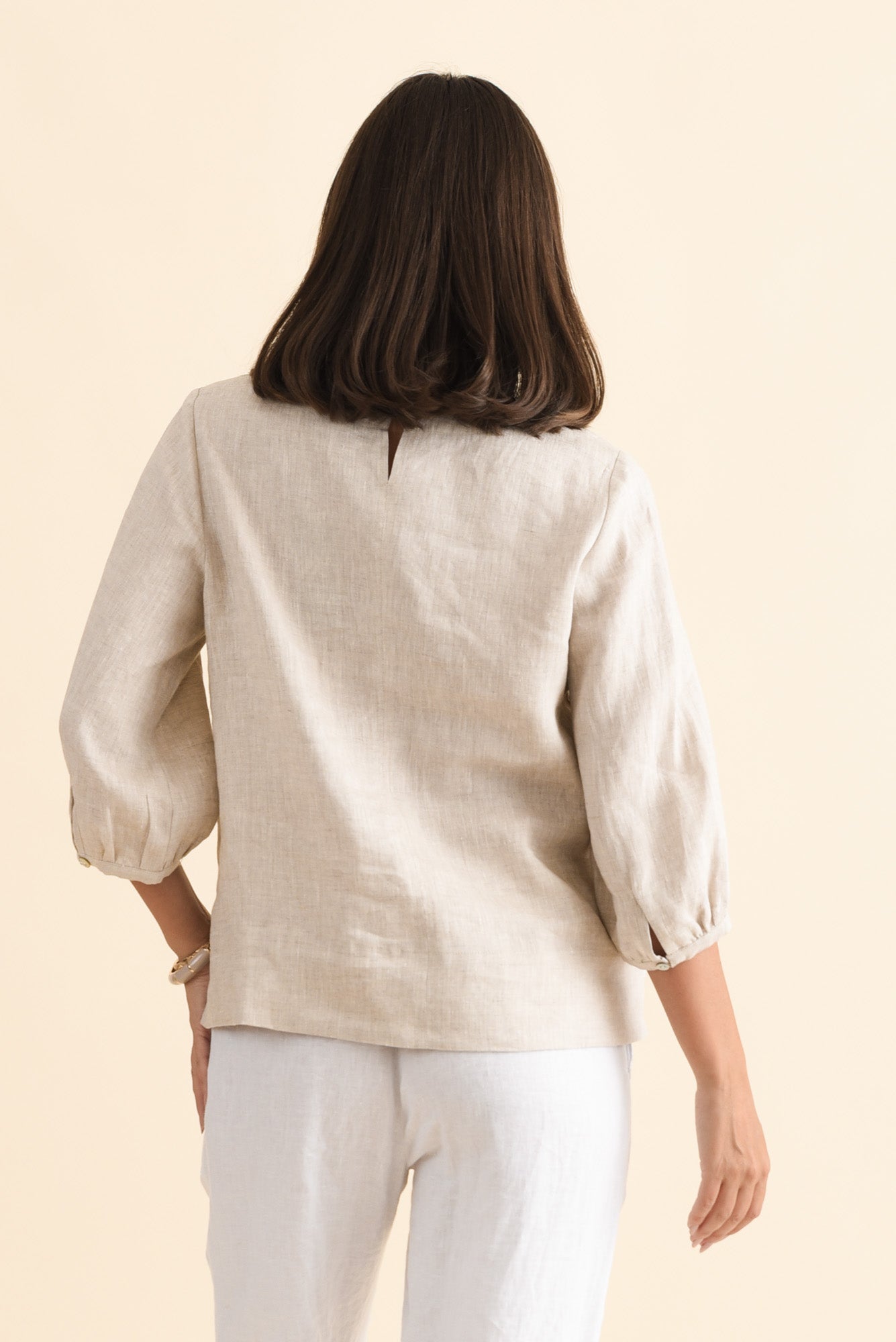 Addie Beige Linen Sleeved Top