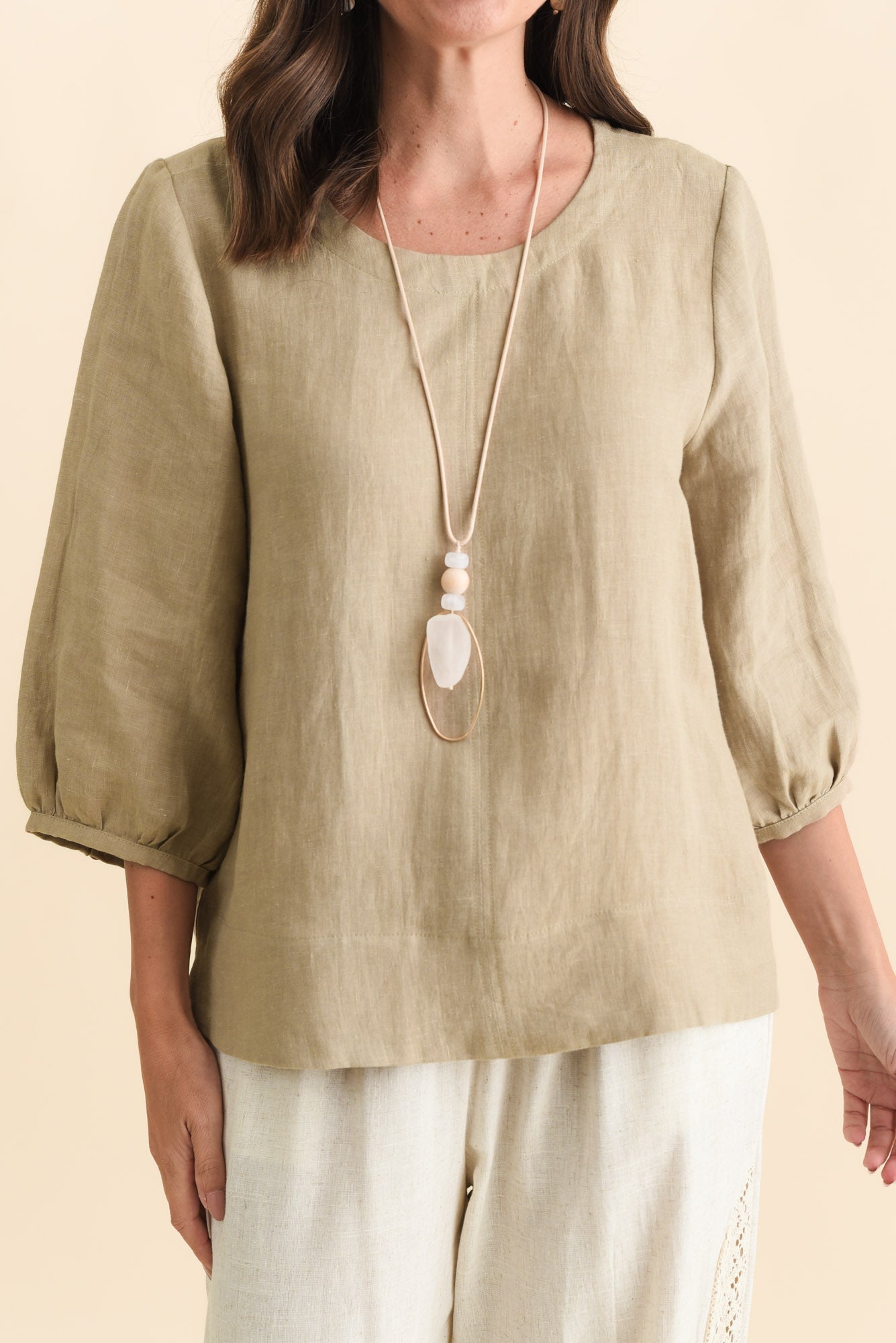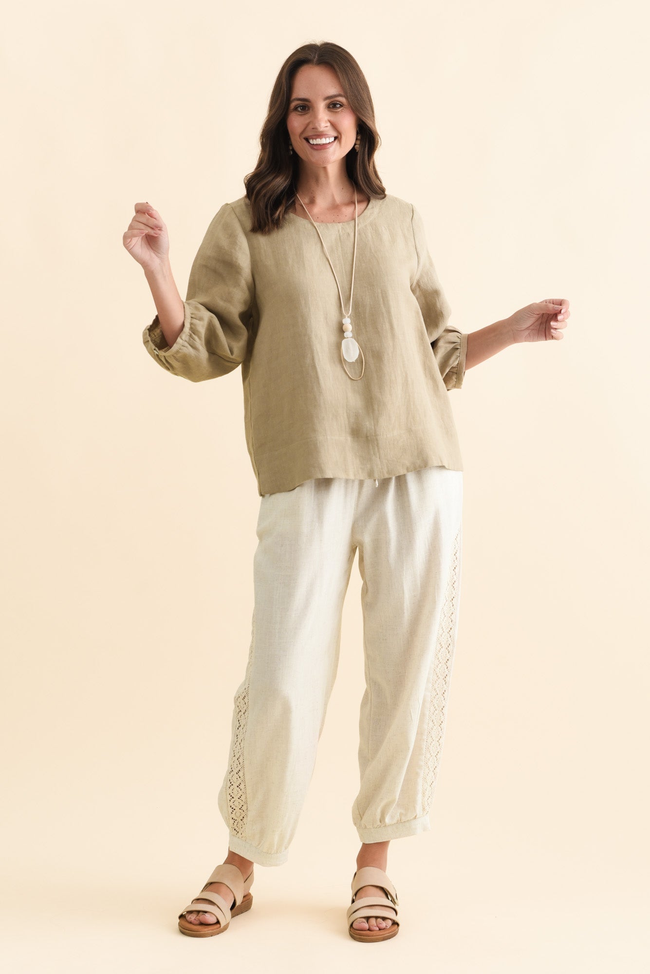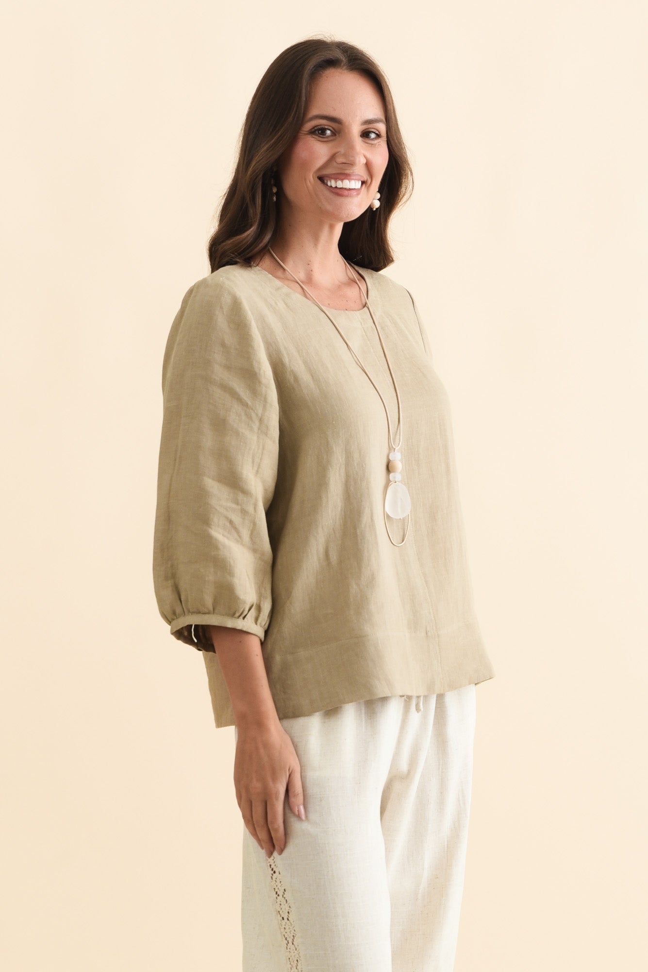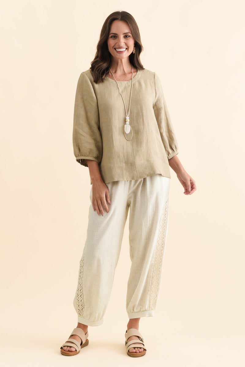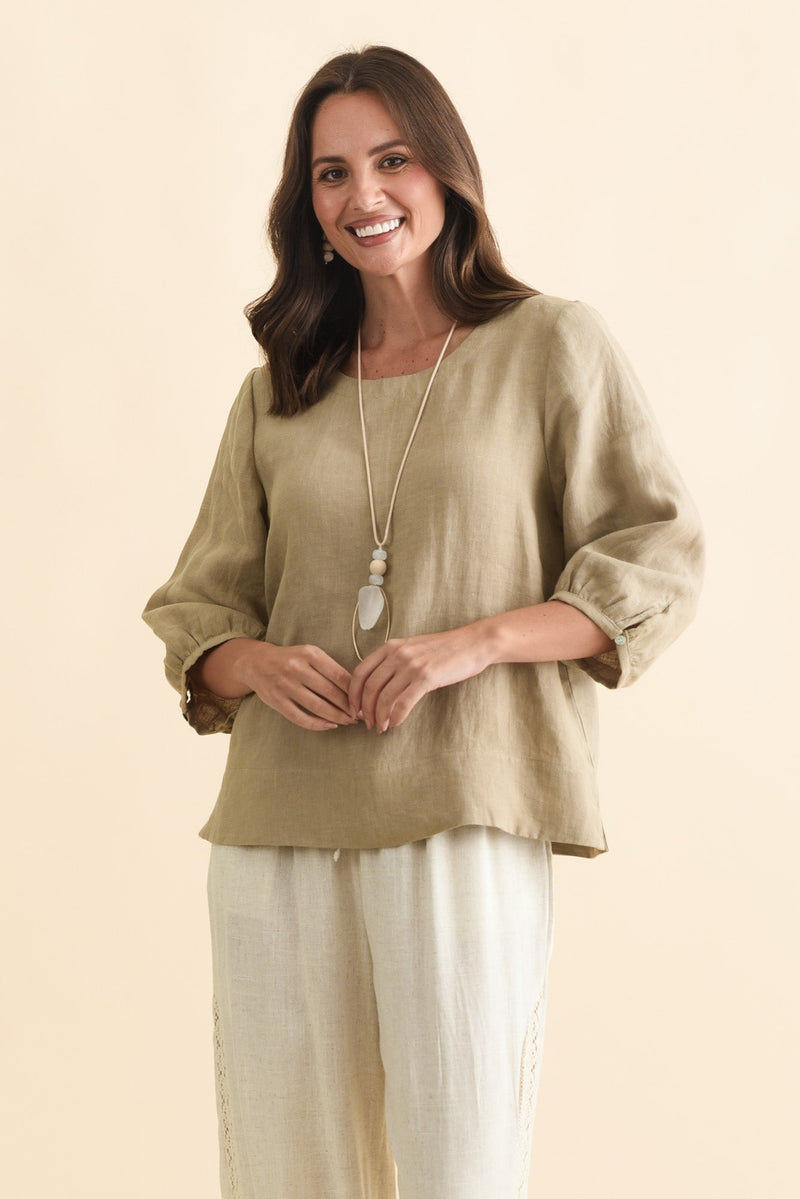 Addie Taupe Linen Sleeved Top