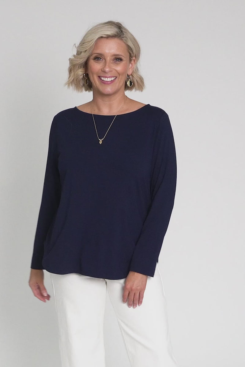 ADELE NAVY LONG SLEEVE BAMBOO TEE