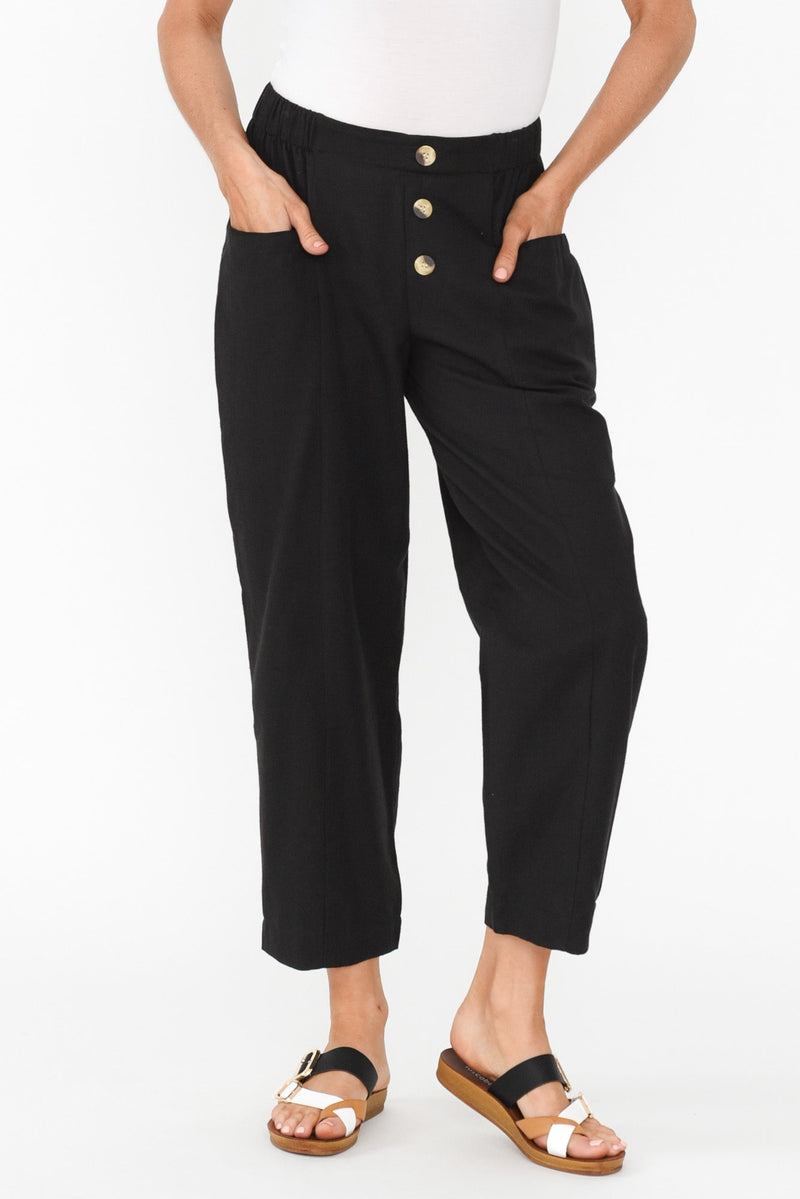 AKEMI BLACK COTTON BLEND POCKET PANTS