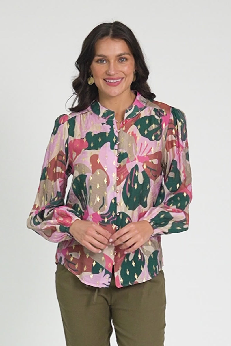 ALAINA PINK FLORAL BUTTON BLOUSE
