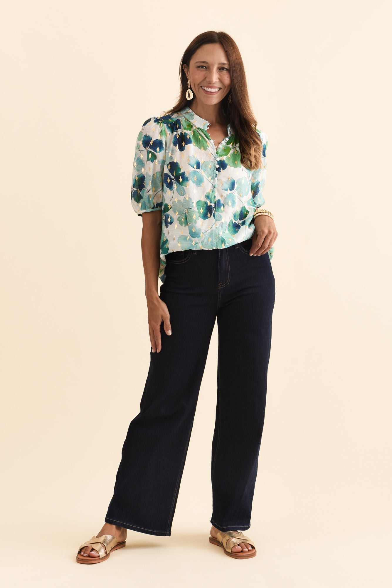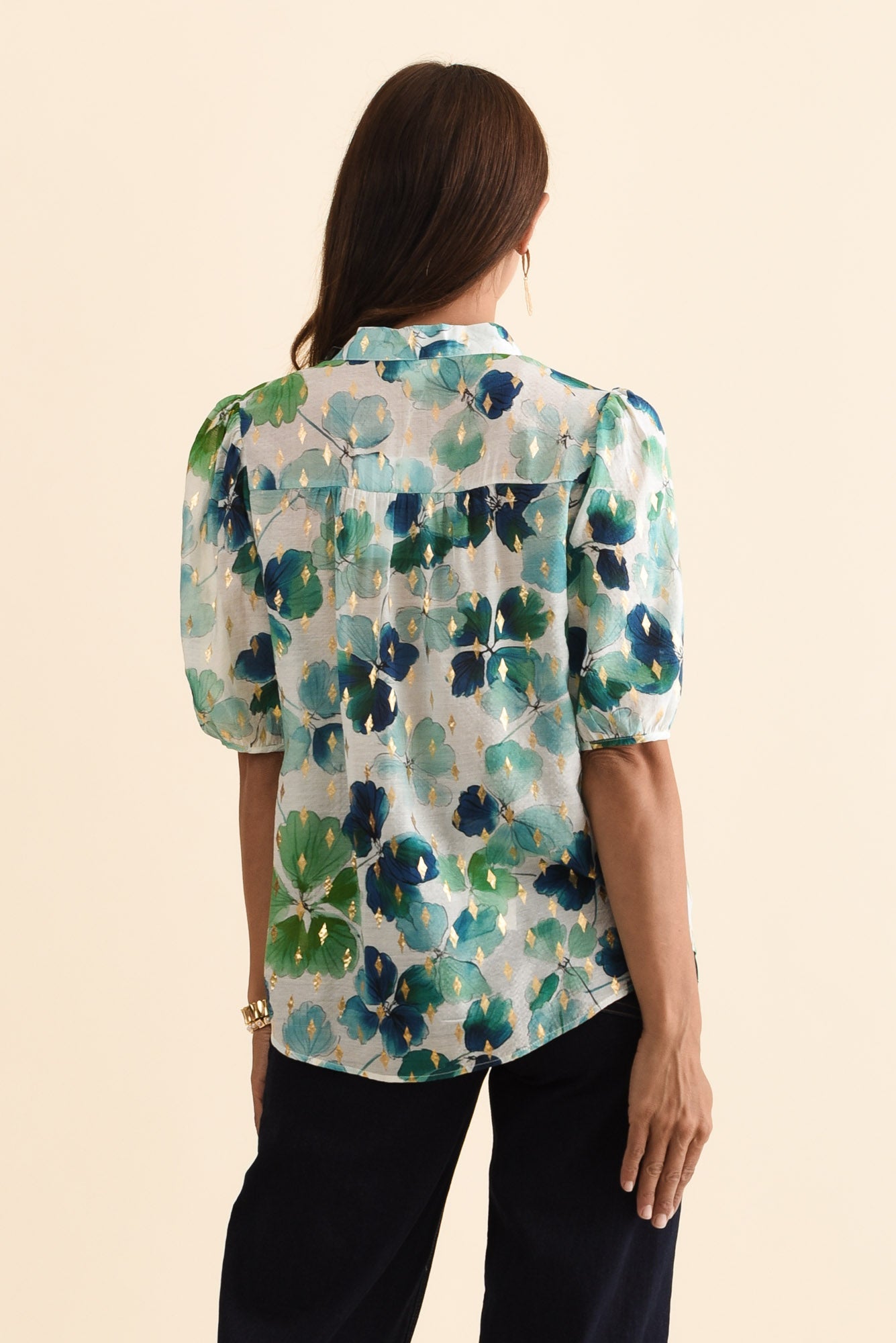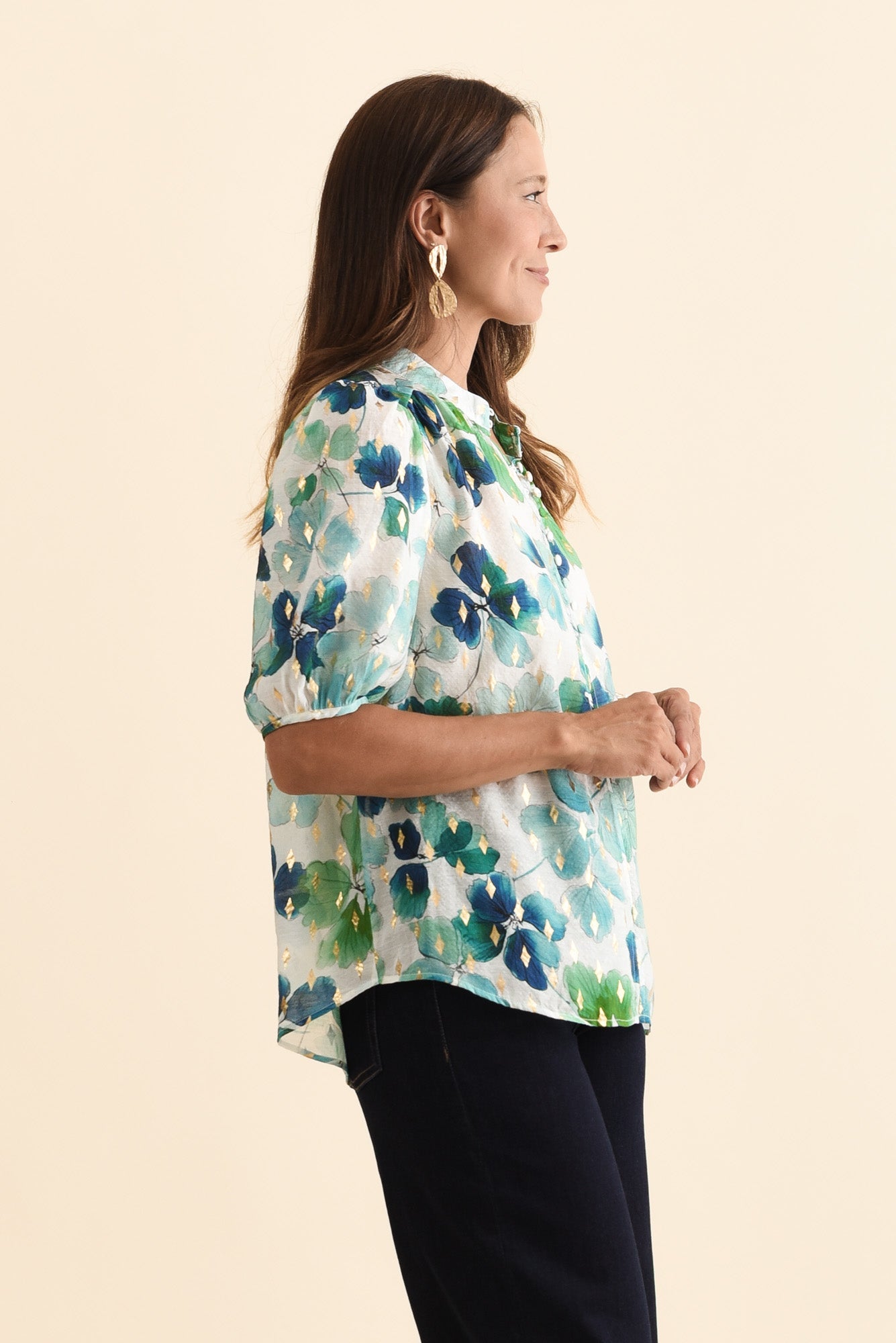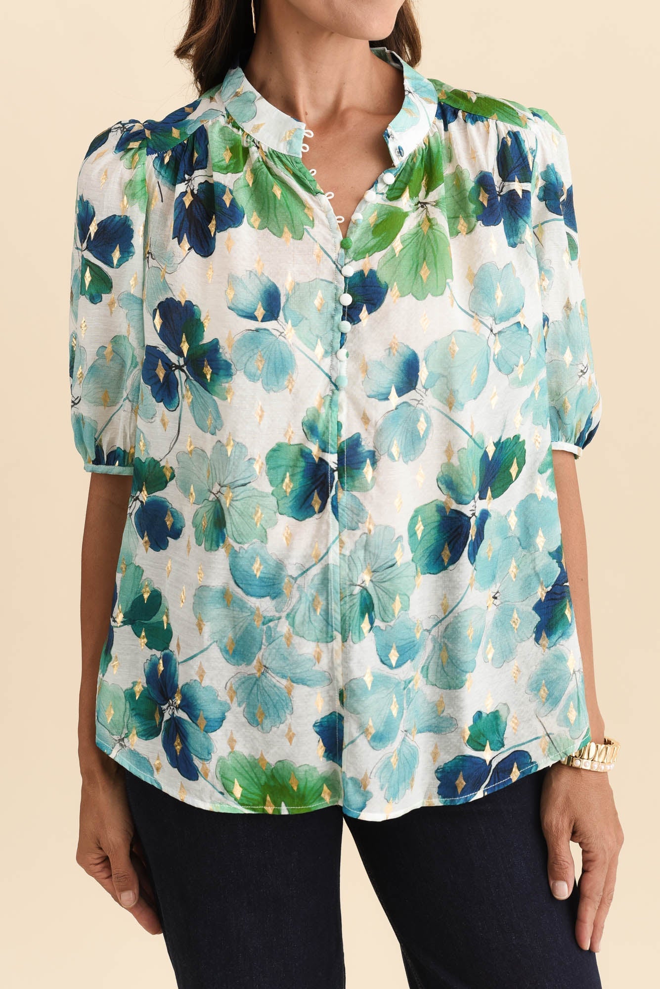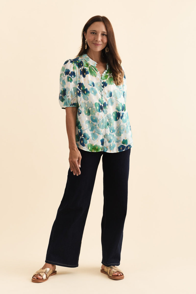 Alexandra Green Flower Button Top