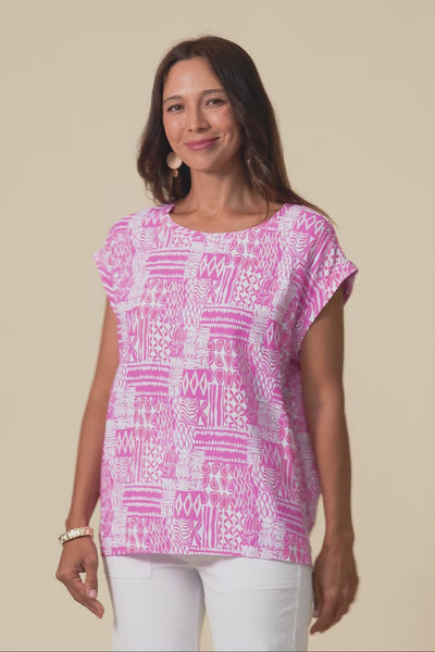 Alta Pink Mosaic Linen Cotton Top