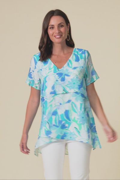 Alvina Aqua Blossom Layered Tunic Top