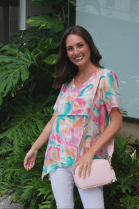 ALVINA TEAL ABSTRACT LAYERED TUNIC TOP