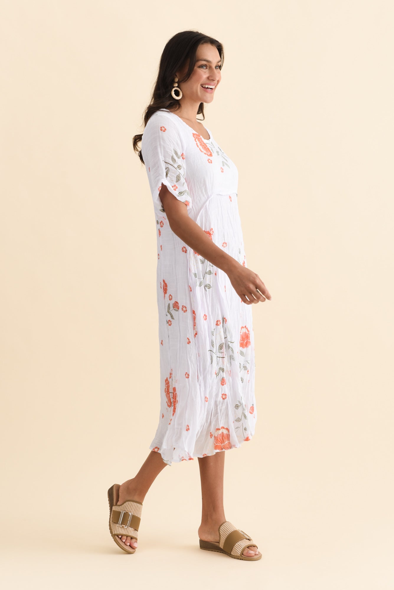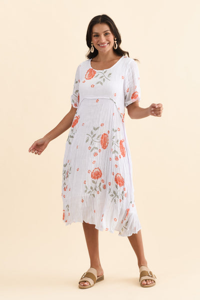AMBERLEY ORANGE FLORAL COTTON BLEND DRESS