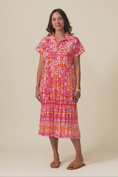 Amerie Pink Abstract Cotton Shirt Dress