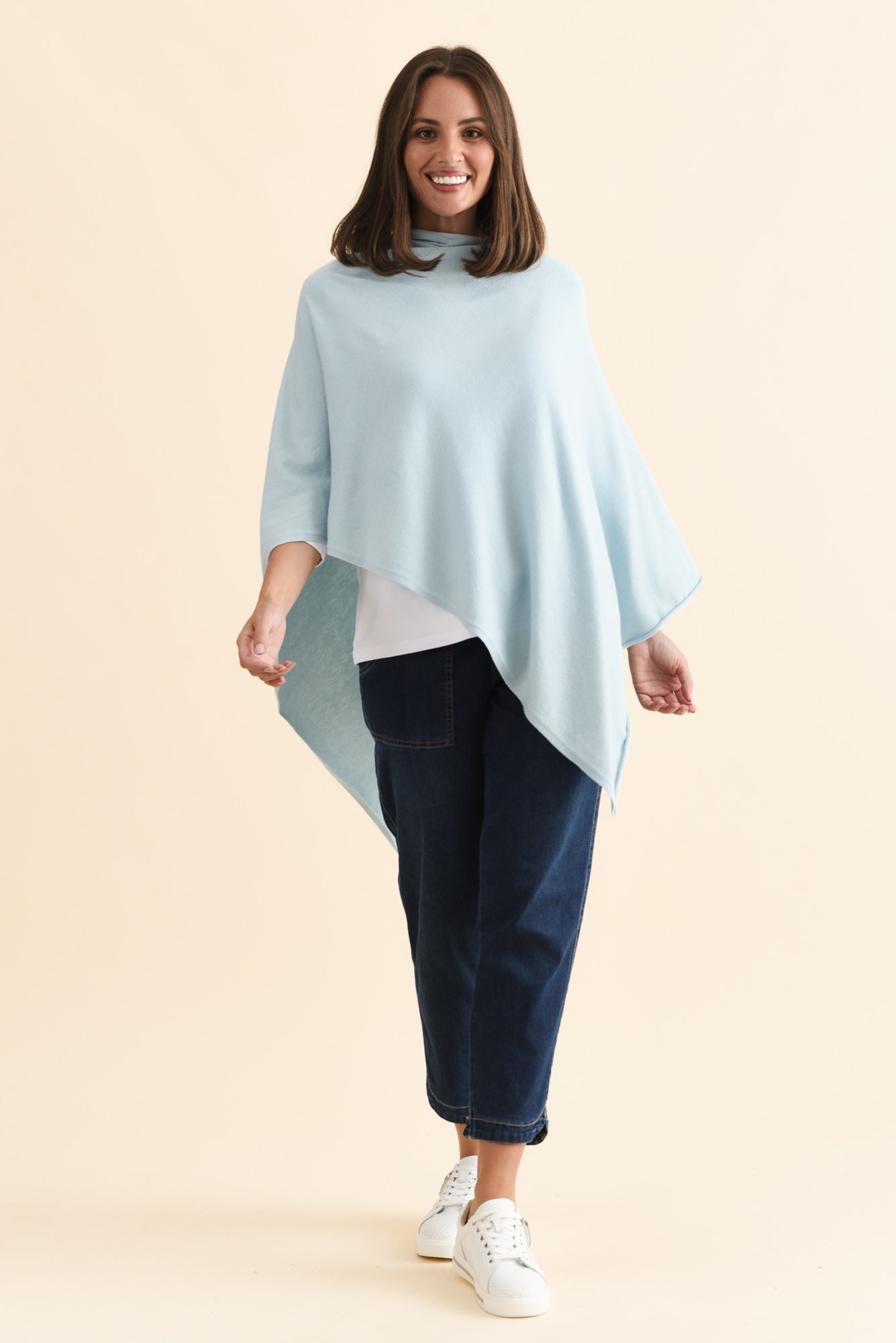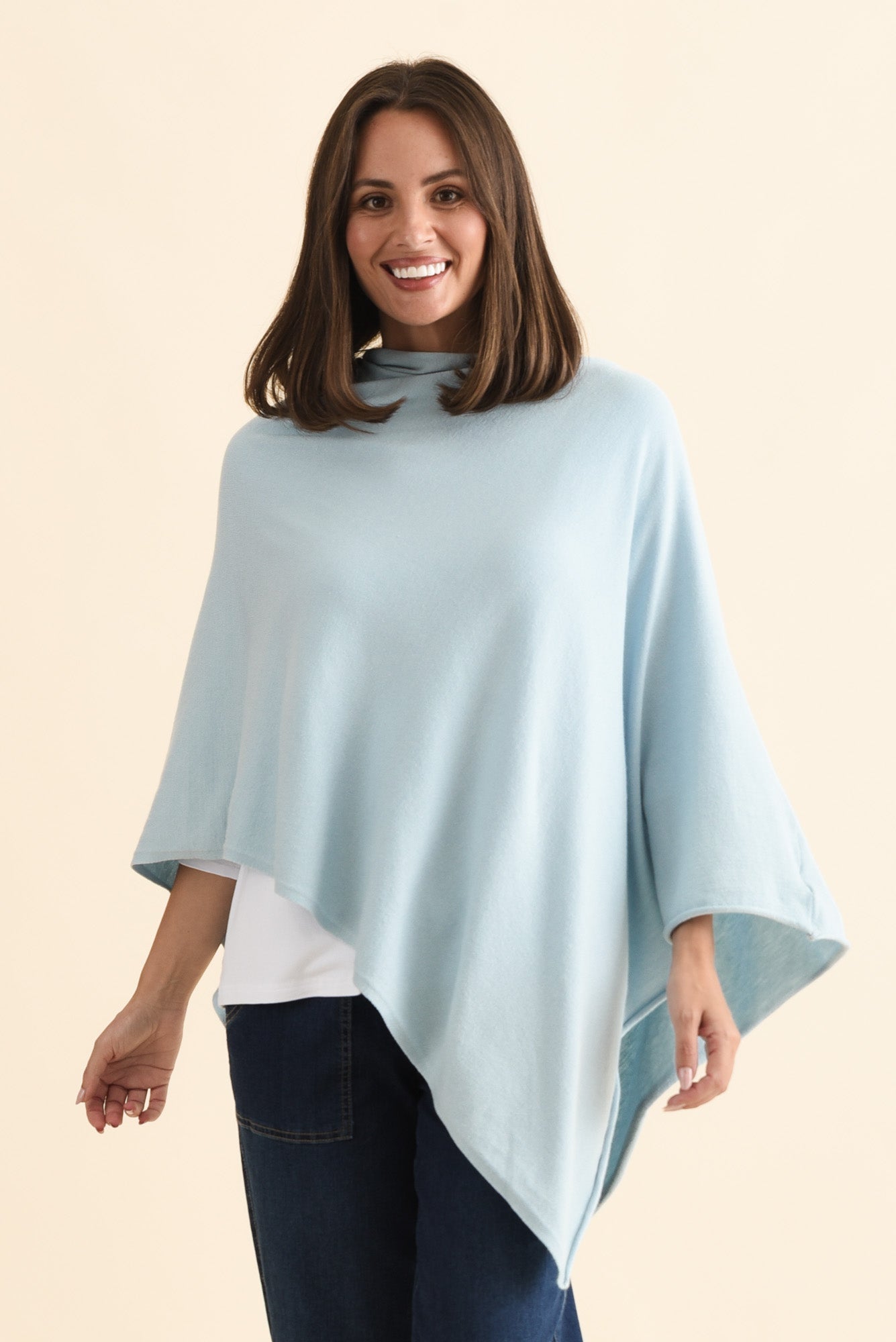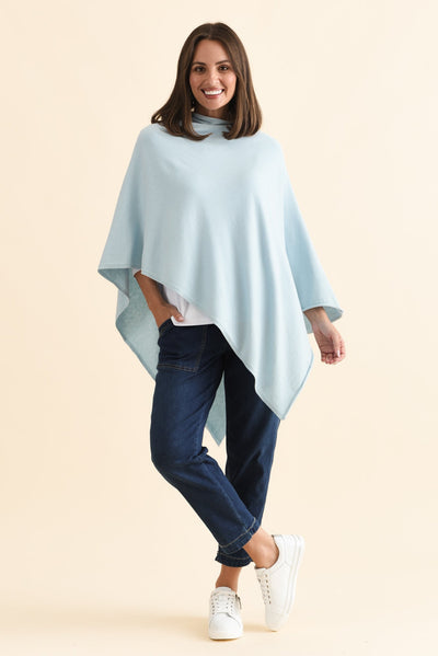 AMY SKY BLUE WOOL BLEND PONCHO