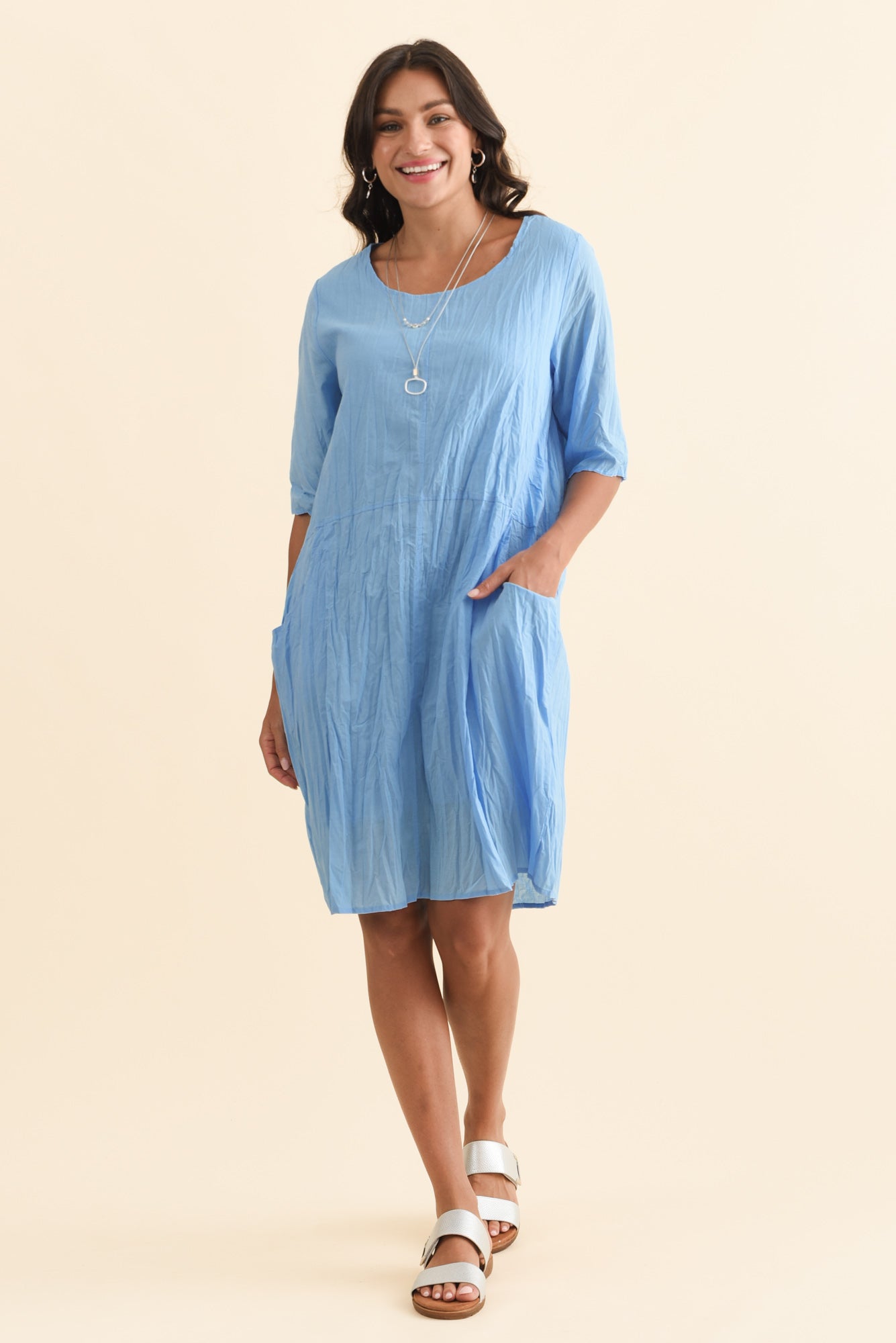 Andora Blue Crinkle Cotton Dress