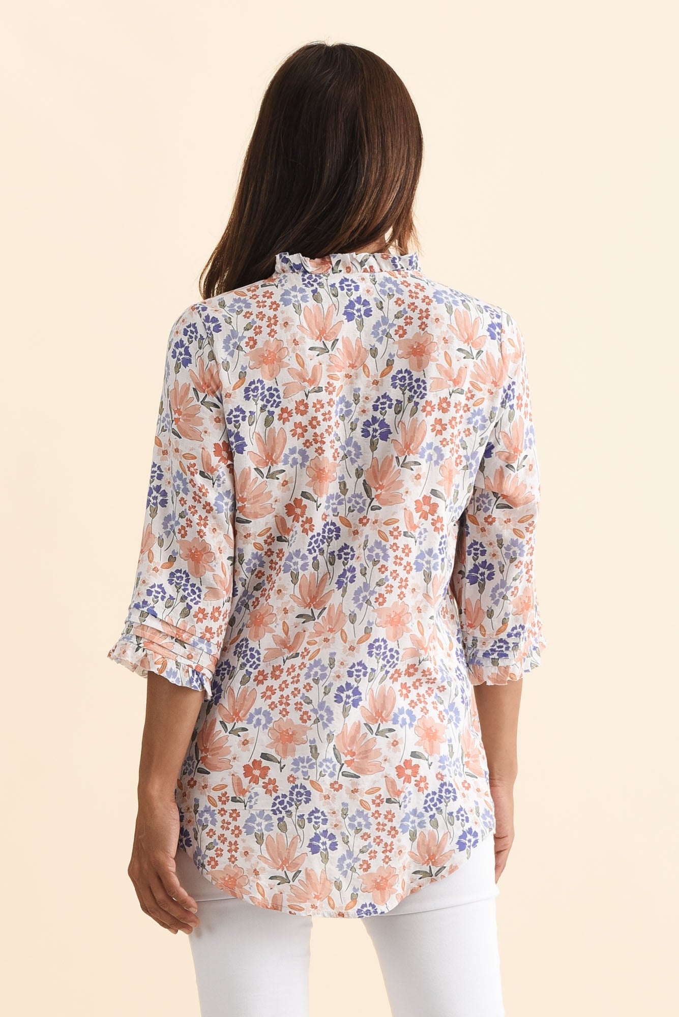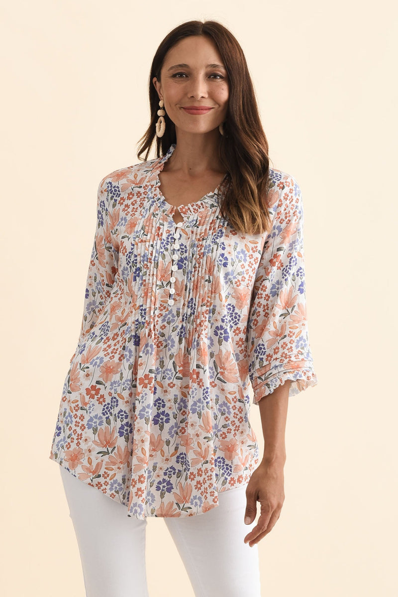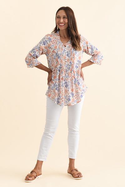 Angelo Orange Wildflower Cotton Button Top
