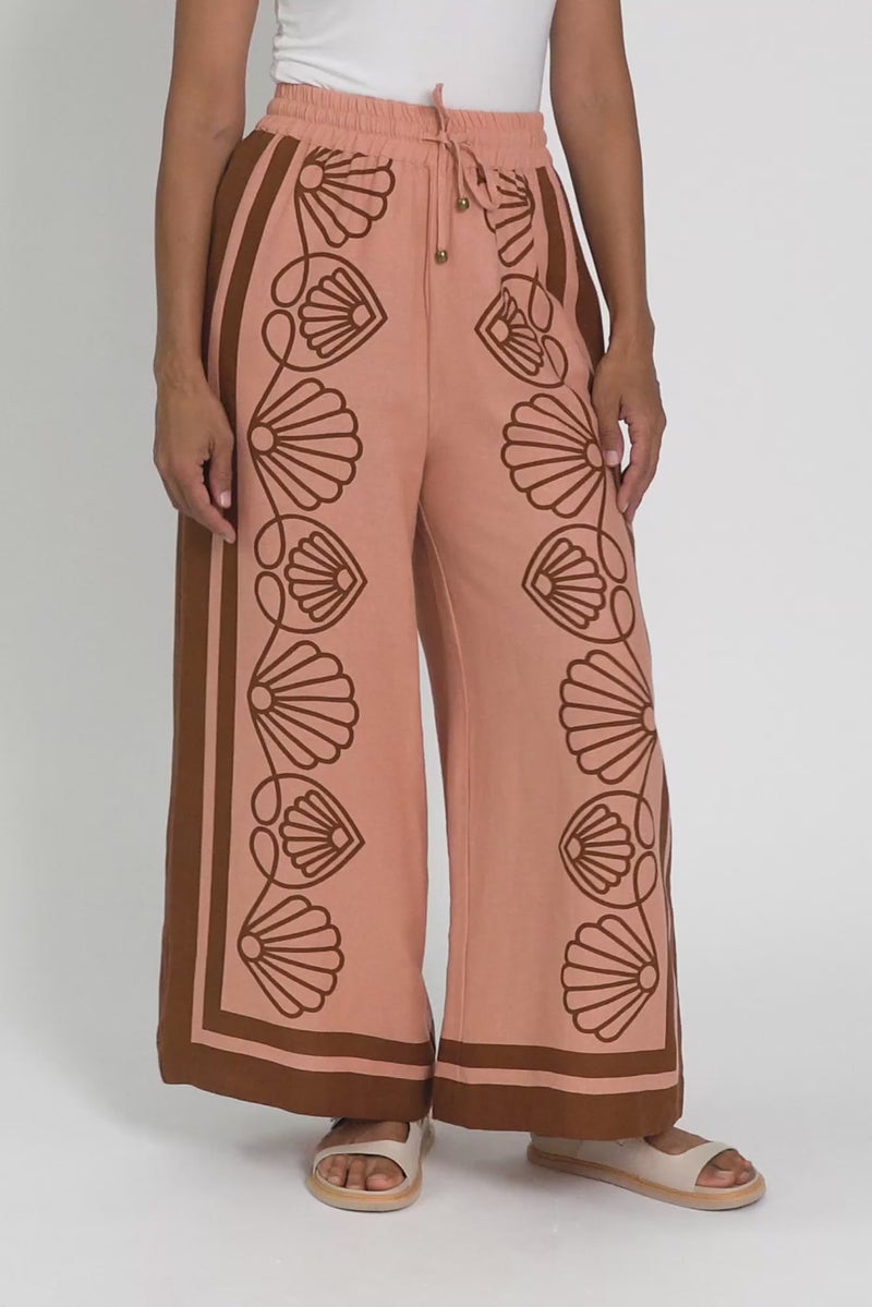 APHRODITE CHOCOLATE SEASHELL LINEN PANTS