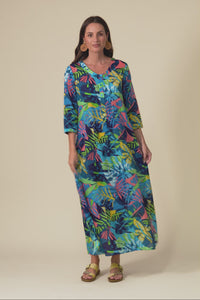 Apia Blue Jungle Cotton Maxi Dress