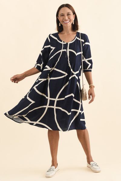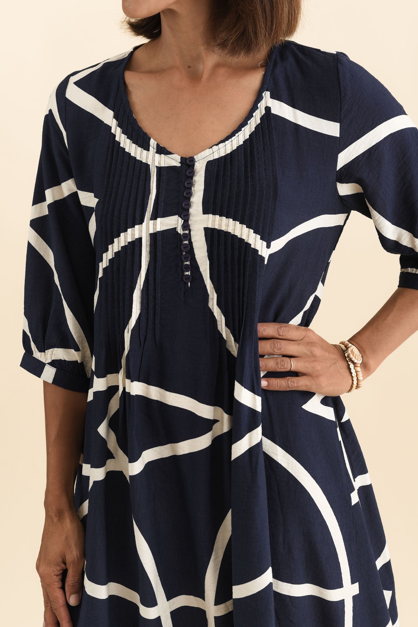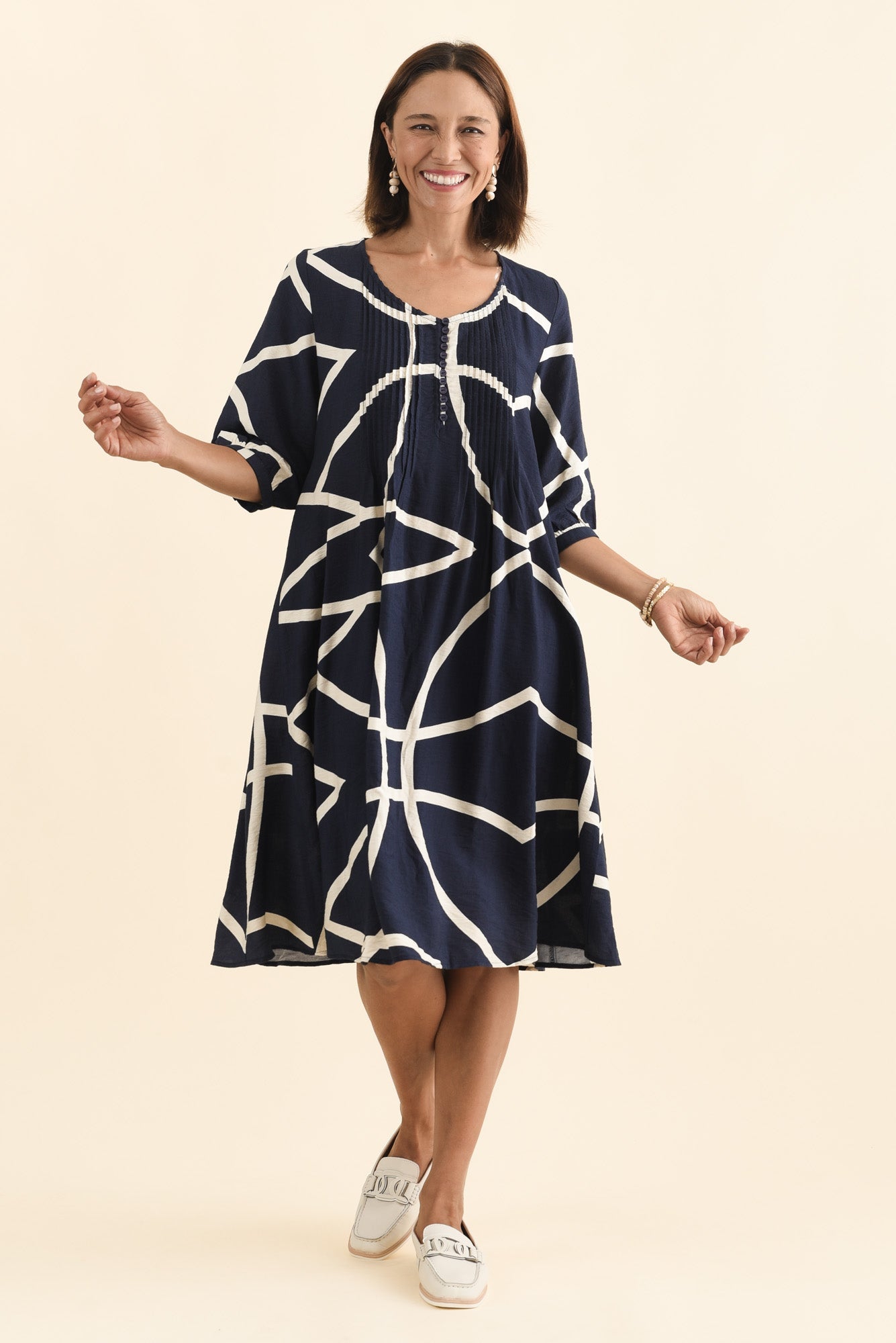 ARCADIA NAVY ABSTRACT BUTTON DRESS