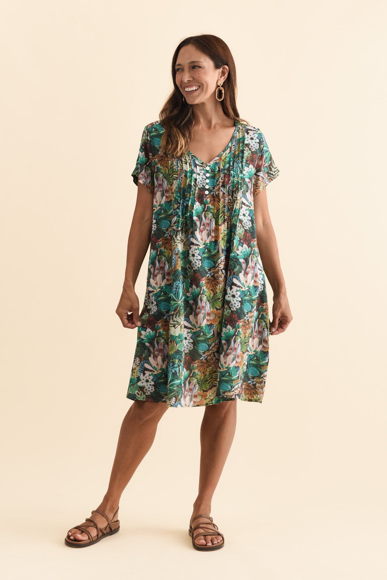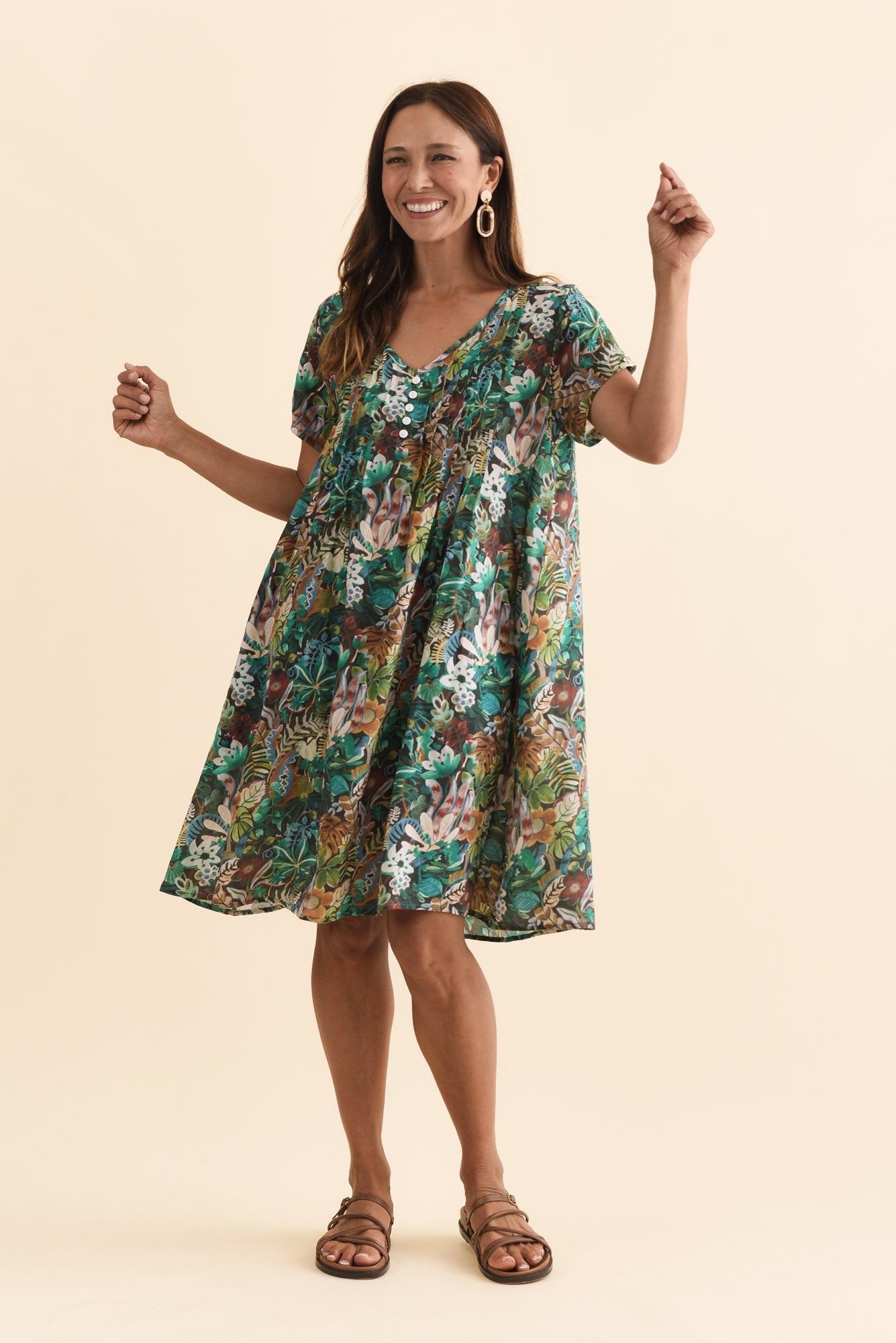 Barry Green Foliage Cotton Button Dress