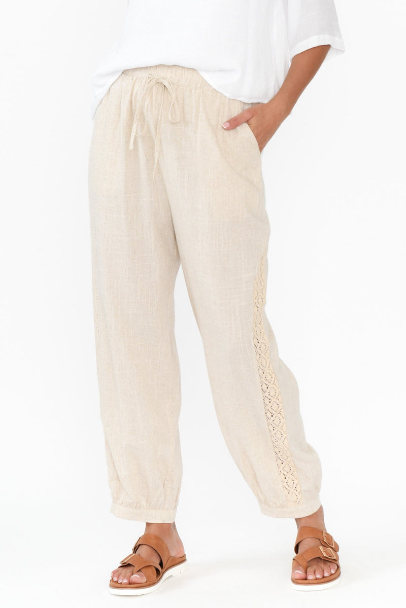 BERETTA BEIGE LACE LINEN BLEND PANTS