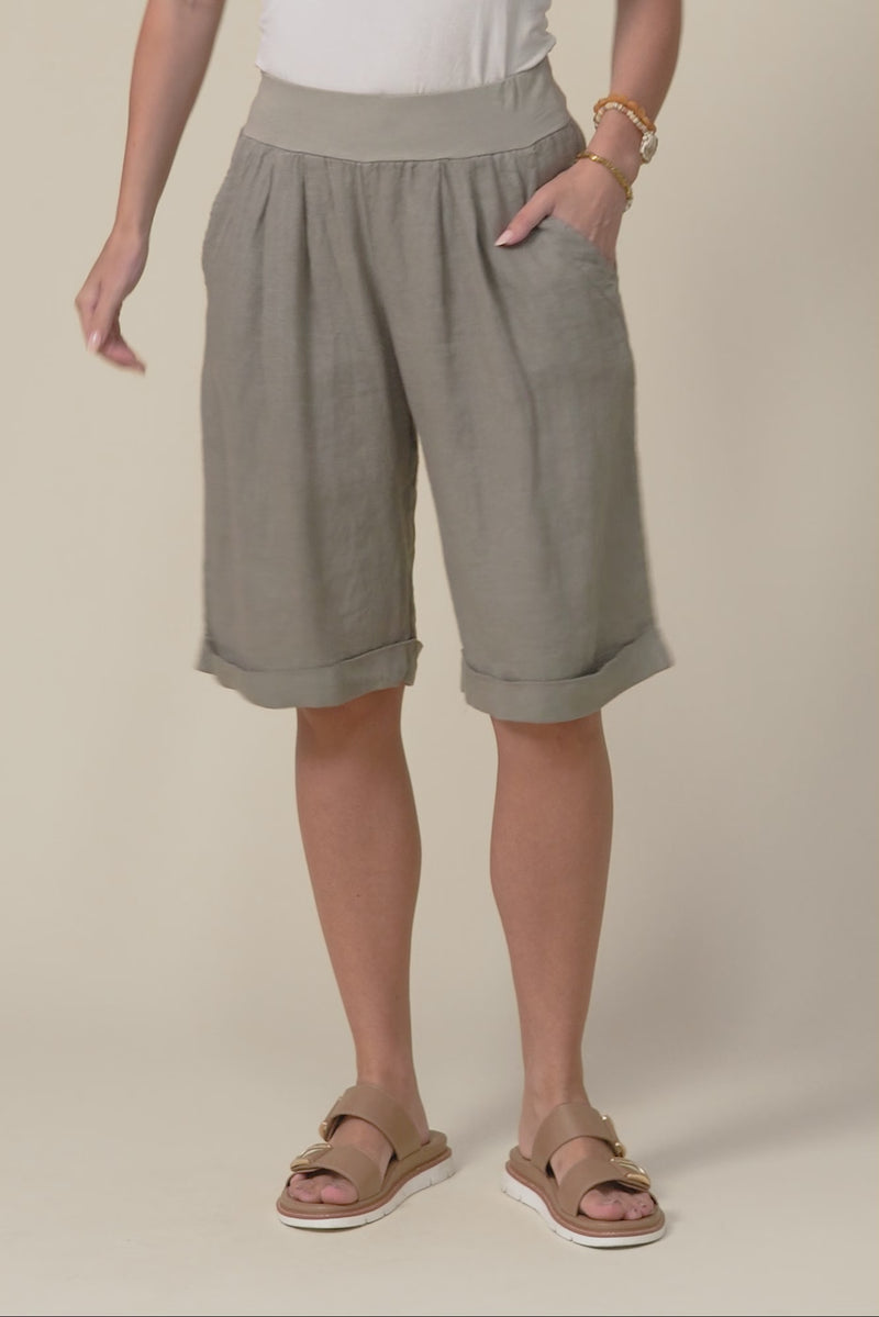 Betsy Taupe Linen Pocket Shorts