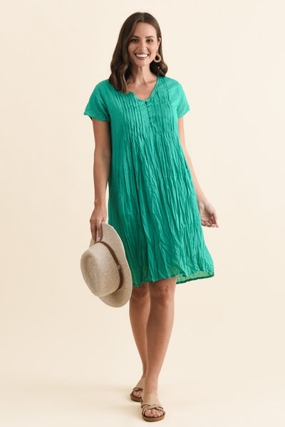 Sabina Green Crinkle Cotton Dress