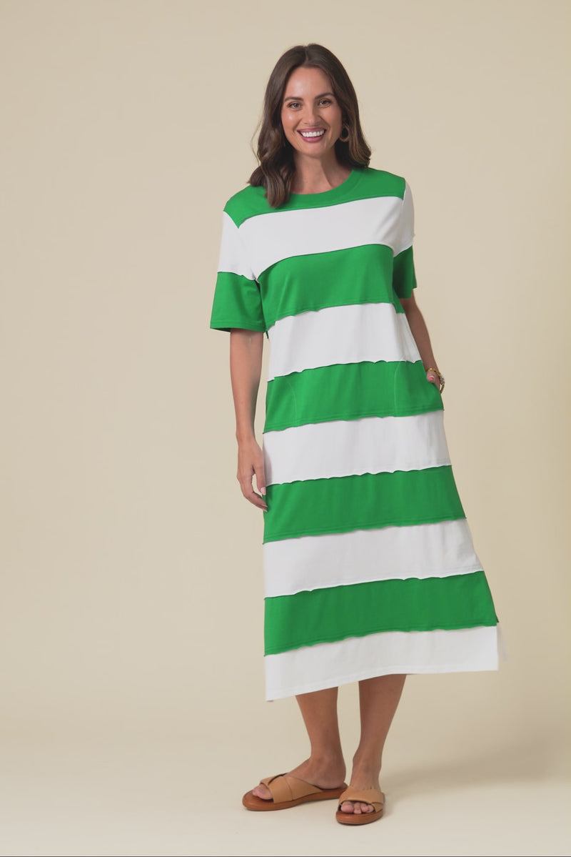 Bold Green Stripe Cotton Tee Dress
