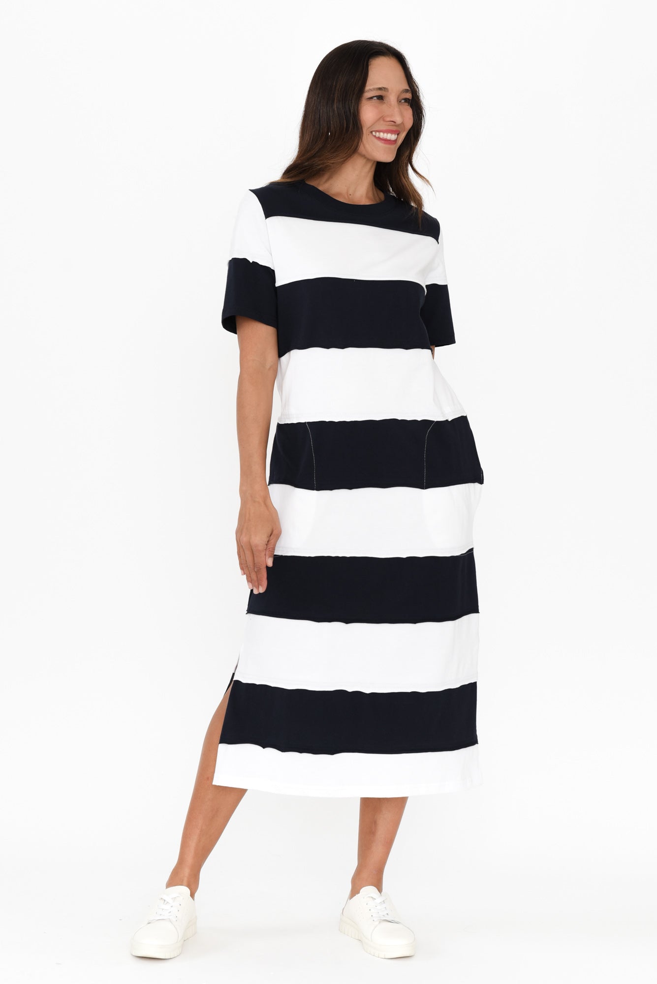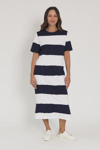 Bold Navy Stripe Cotton Tee Dress