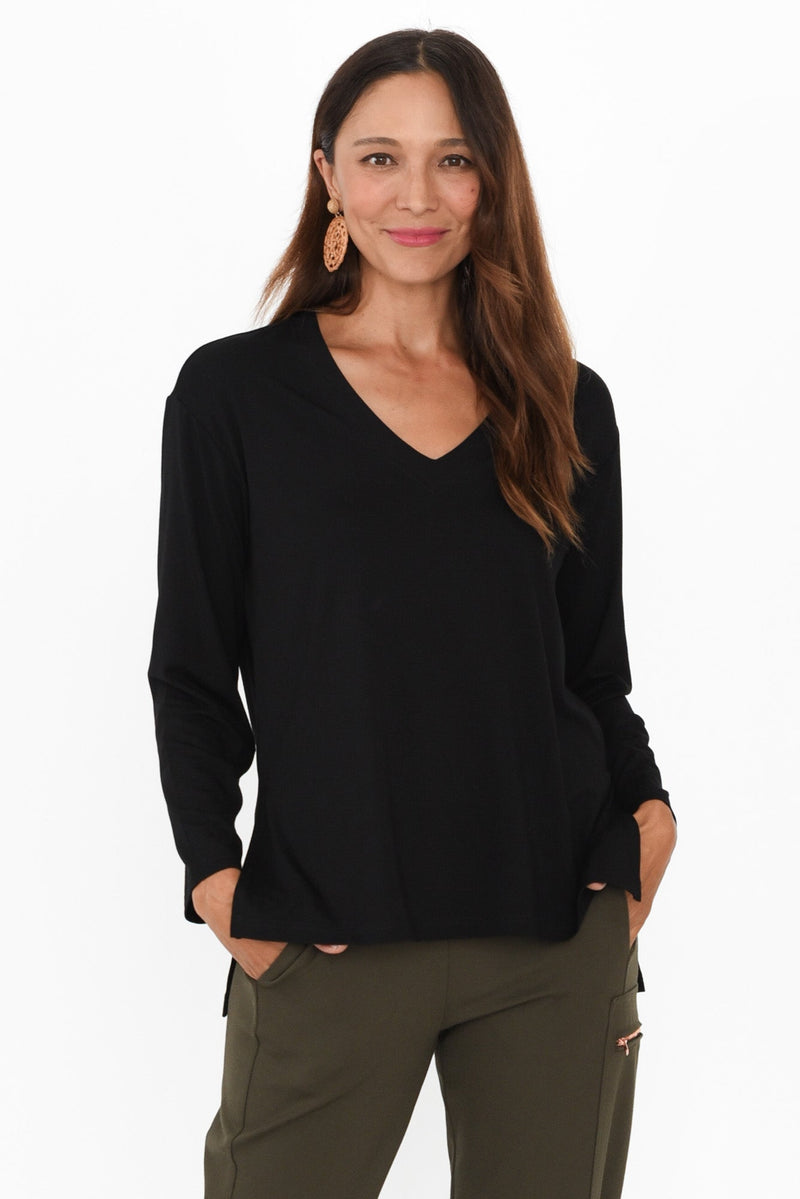 Braxton Black Bamboo Long Sleeve Top