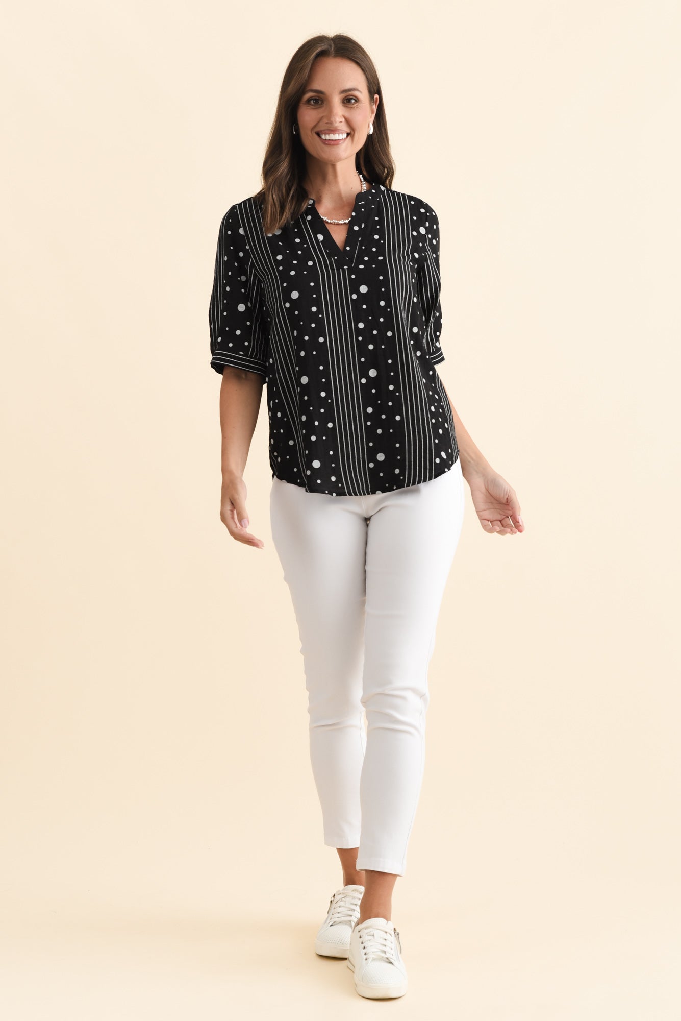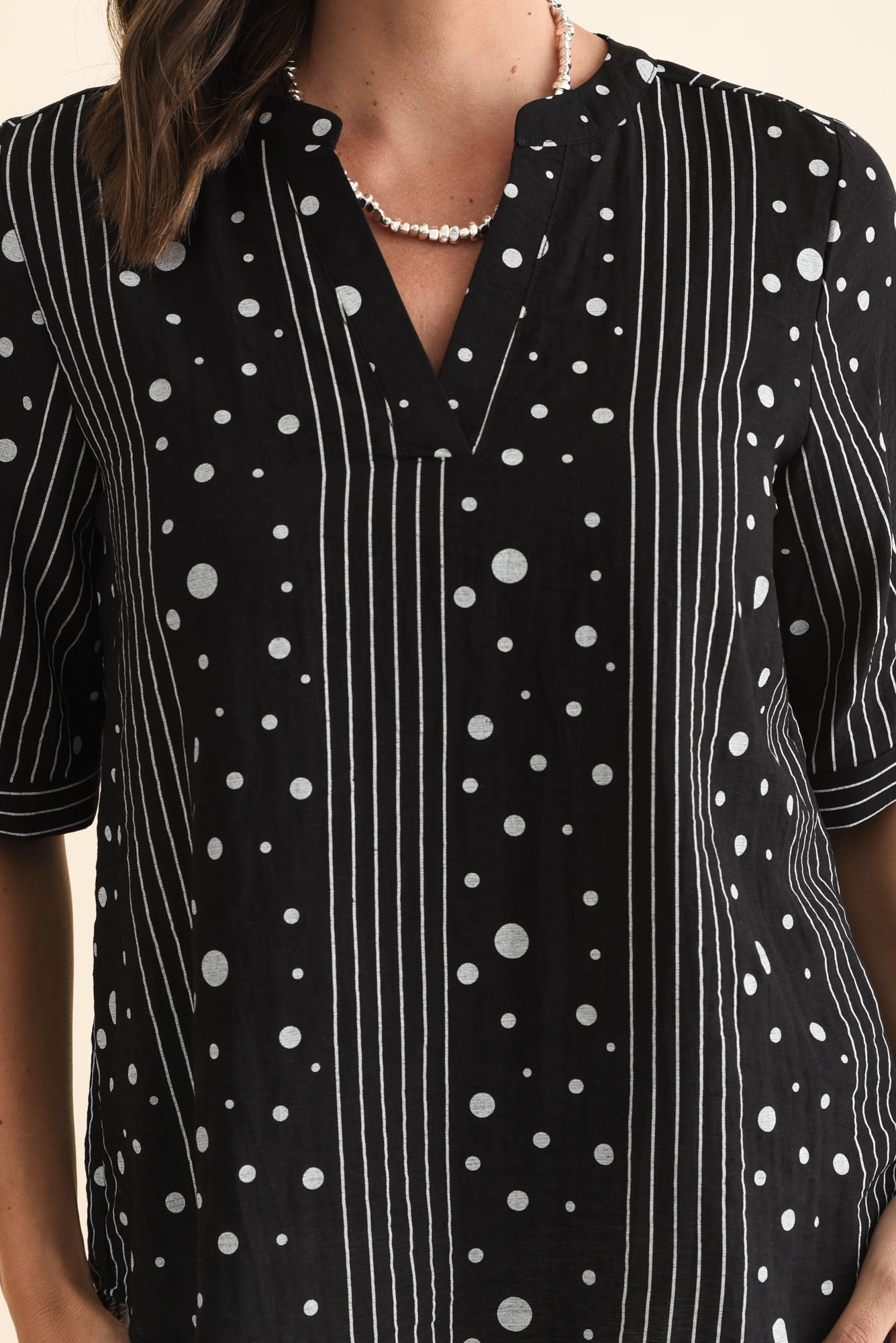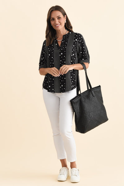 Breigh Black Geo V Neck Top