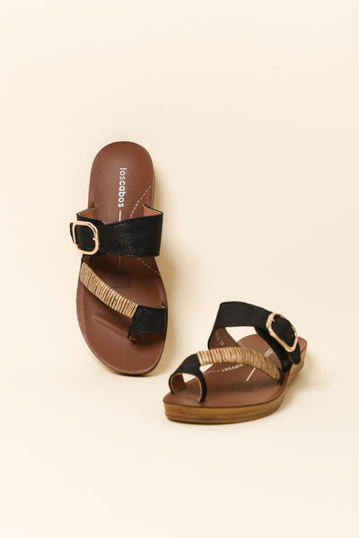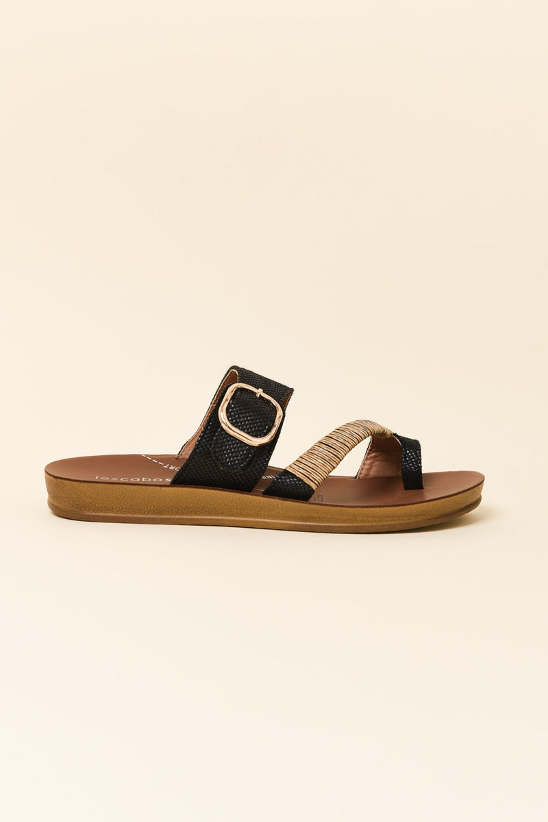 Bria Black Raffia Slide