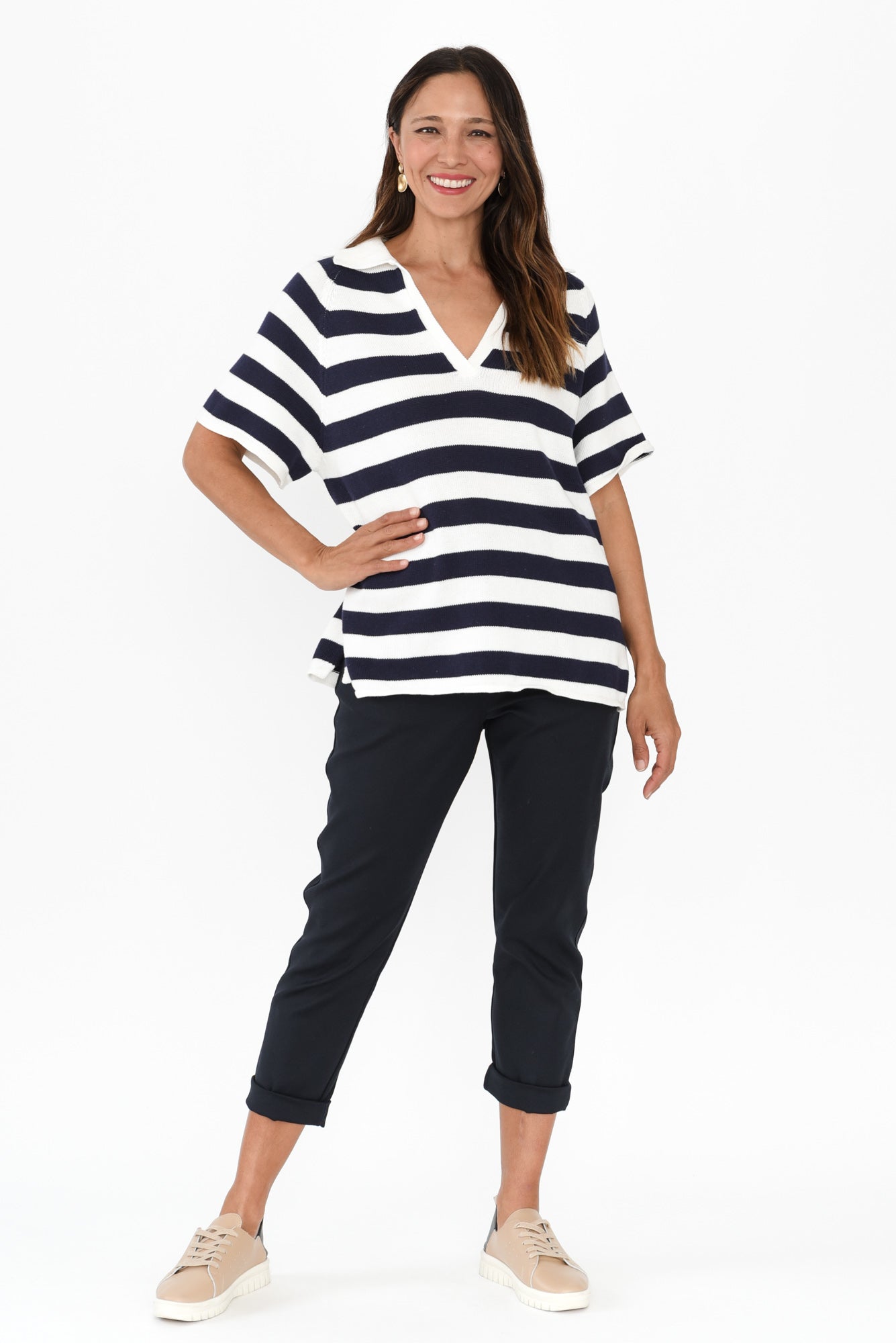 BRIANNA NAVY STRIPE COTTON POLO