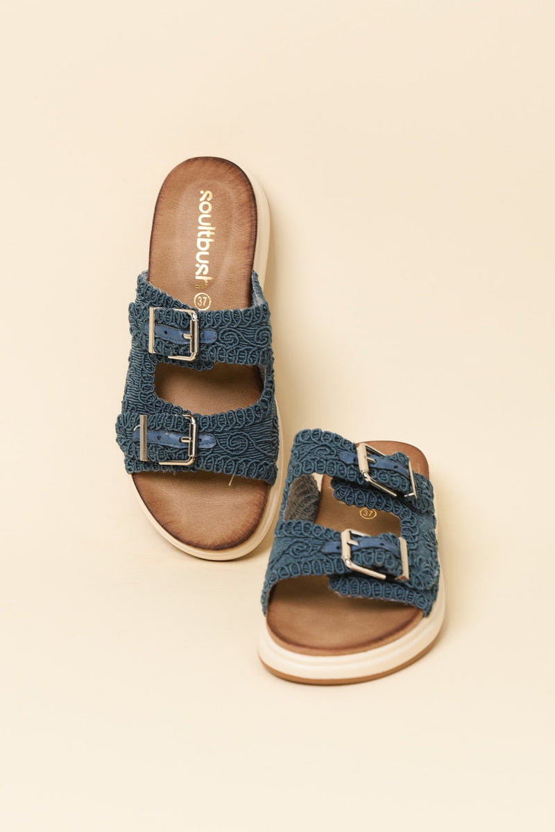 BRIZZIE BLUE BUCKLE PLATFORM SLIDE
