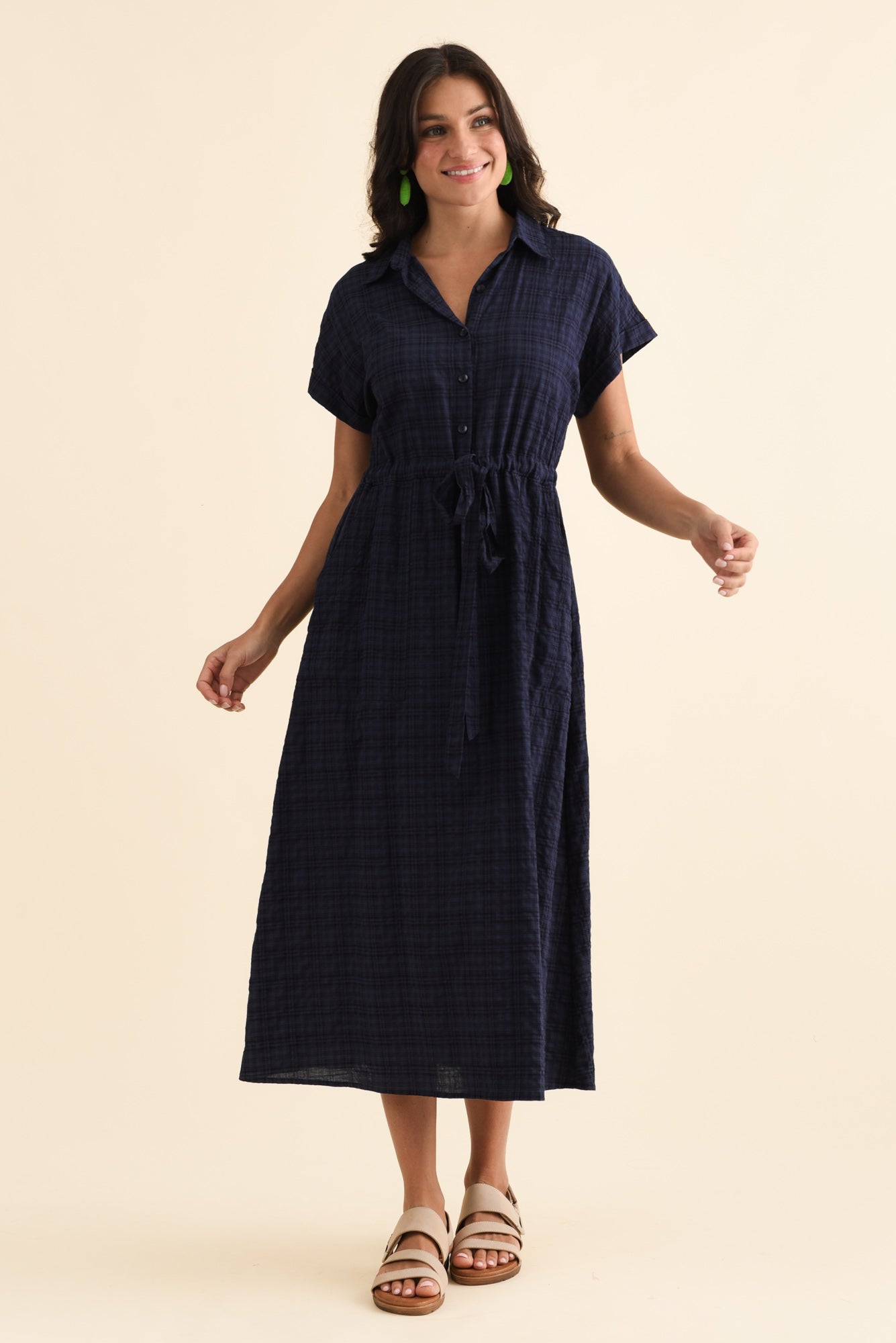 BRYDIE NAVY CHECK COTTON BLEND DRESS
