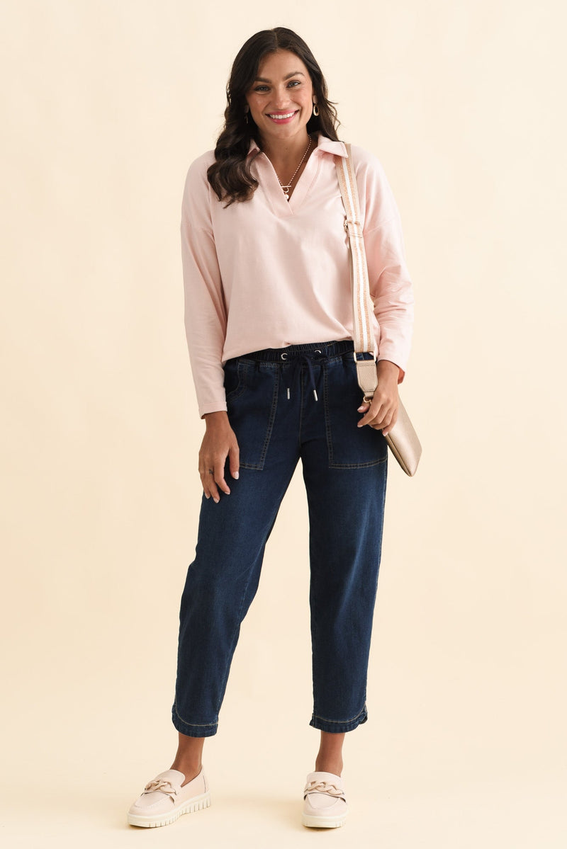 Butler Pink Collared Long Sleeve Top