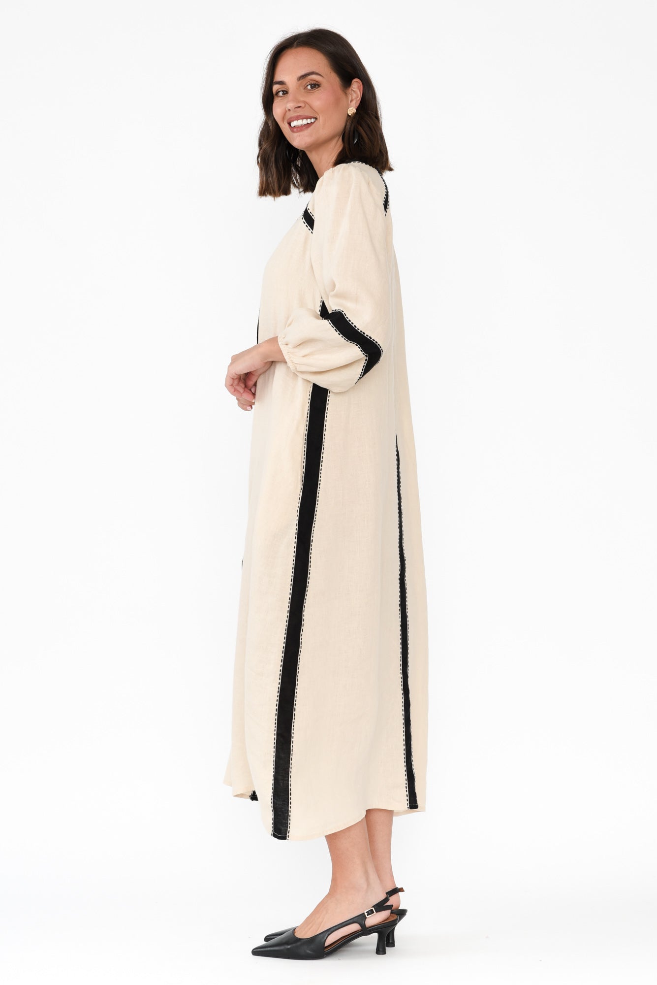 CAROLINA CREAM CONTRAST LINEN TIE DRESS