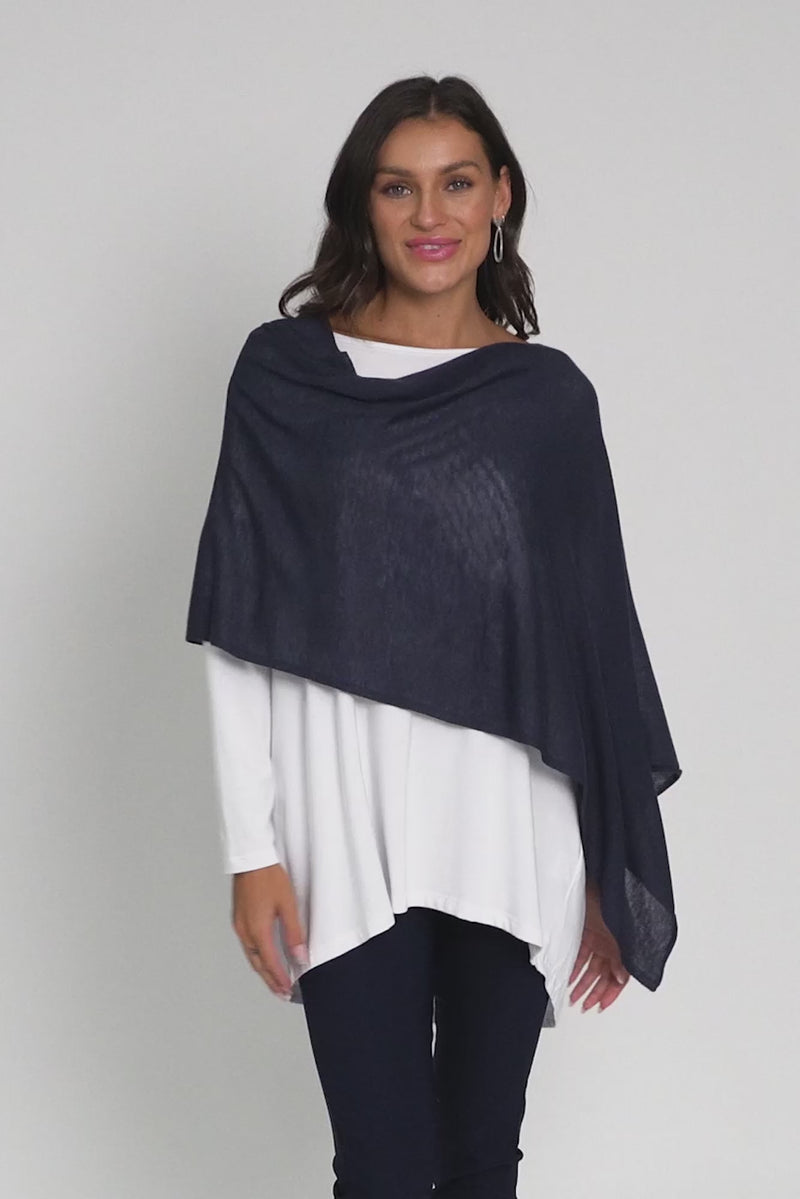 Carrie Navy Cashmere Bamboo Poncho