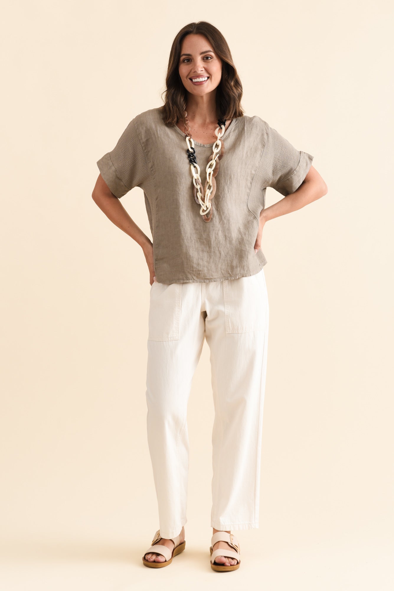 Casper Taupe Linen Cotton Top