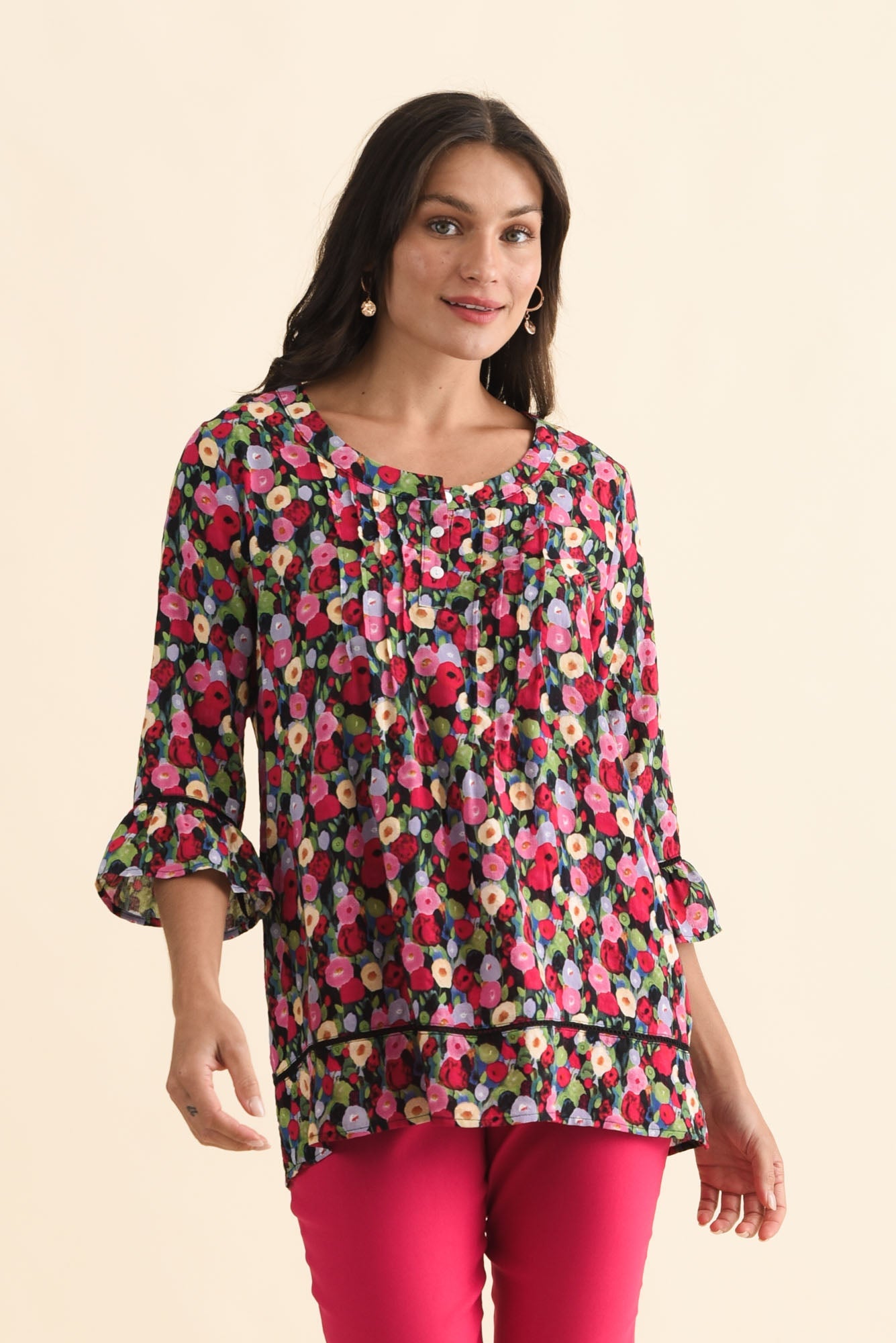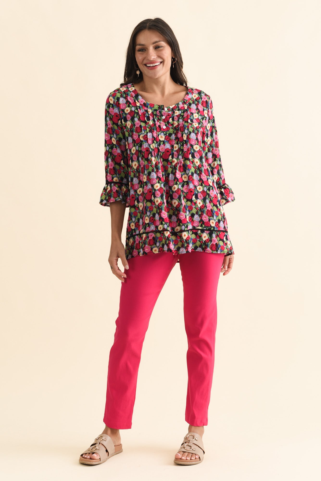 CASSIDY PINK POPPY COTTON SLEEVED TOP
