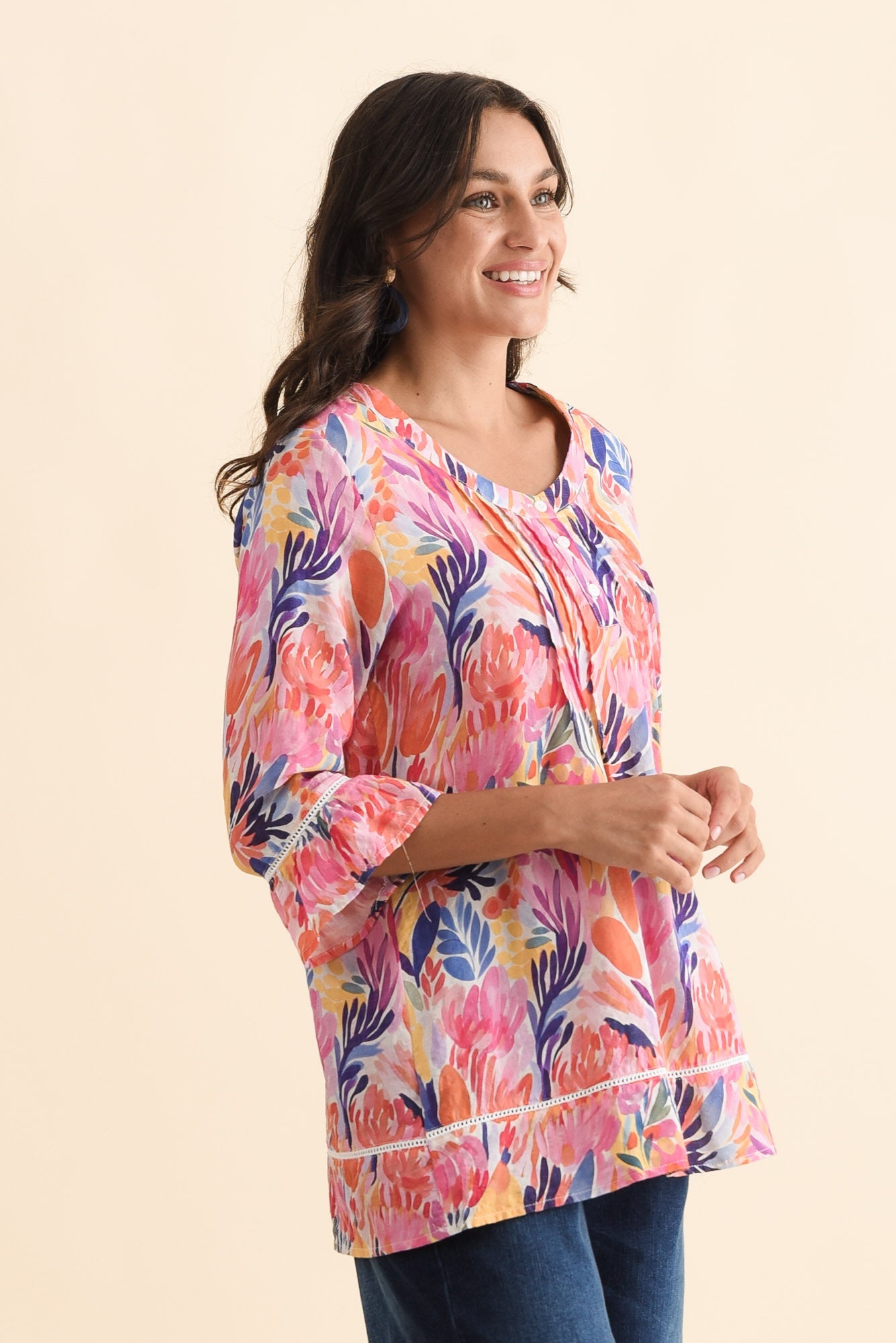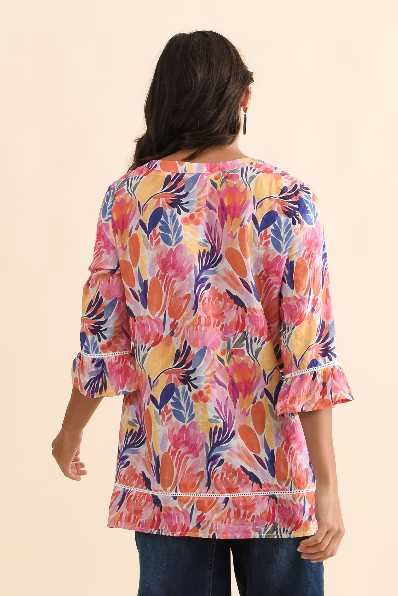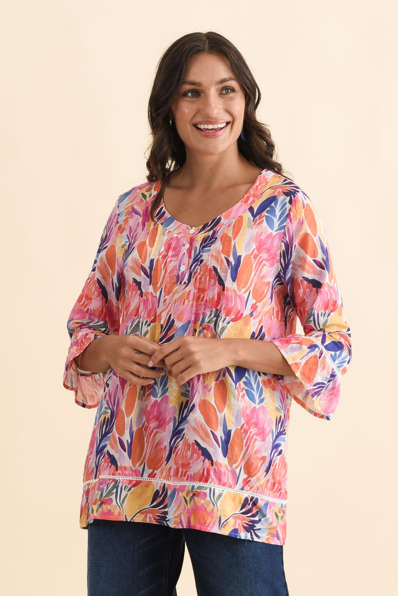 Cassidy Red Blossom Cotton Sleeved Top