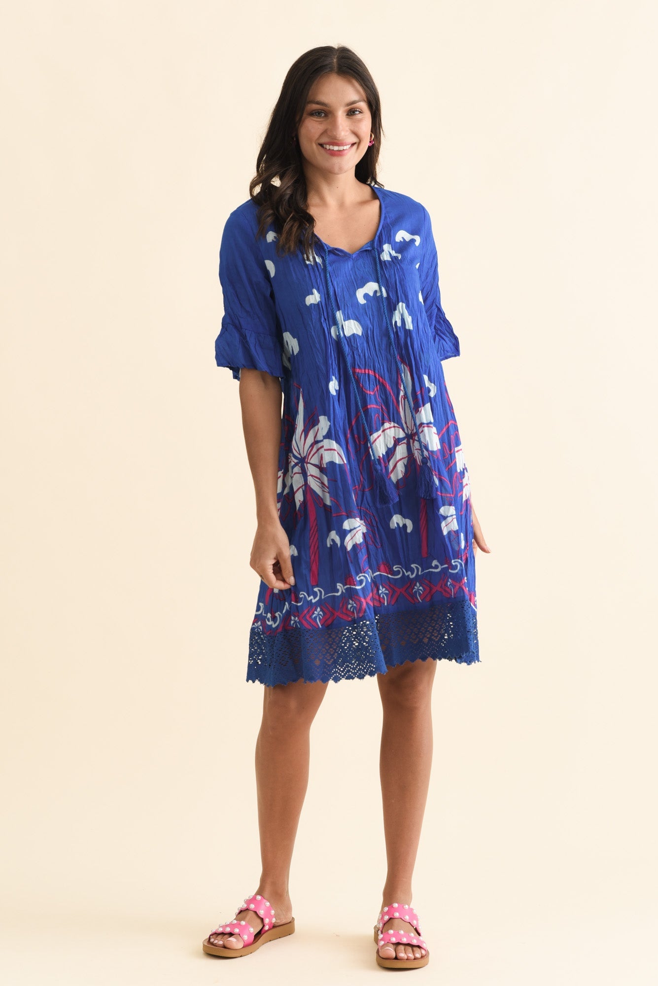 Cayman Cobalt Tropical Cotton Tunic Dress