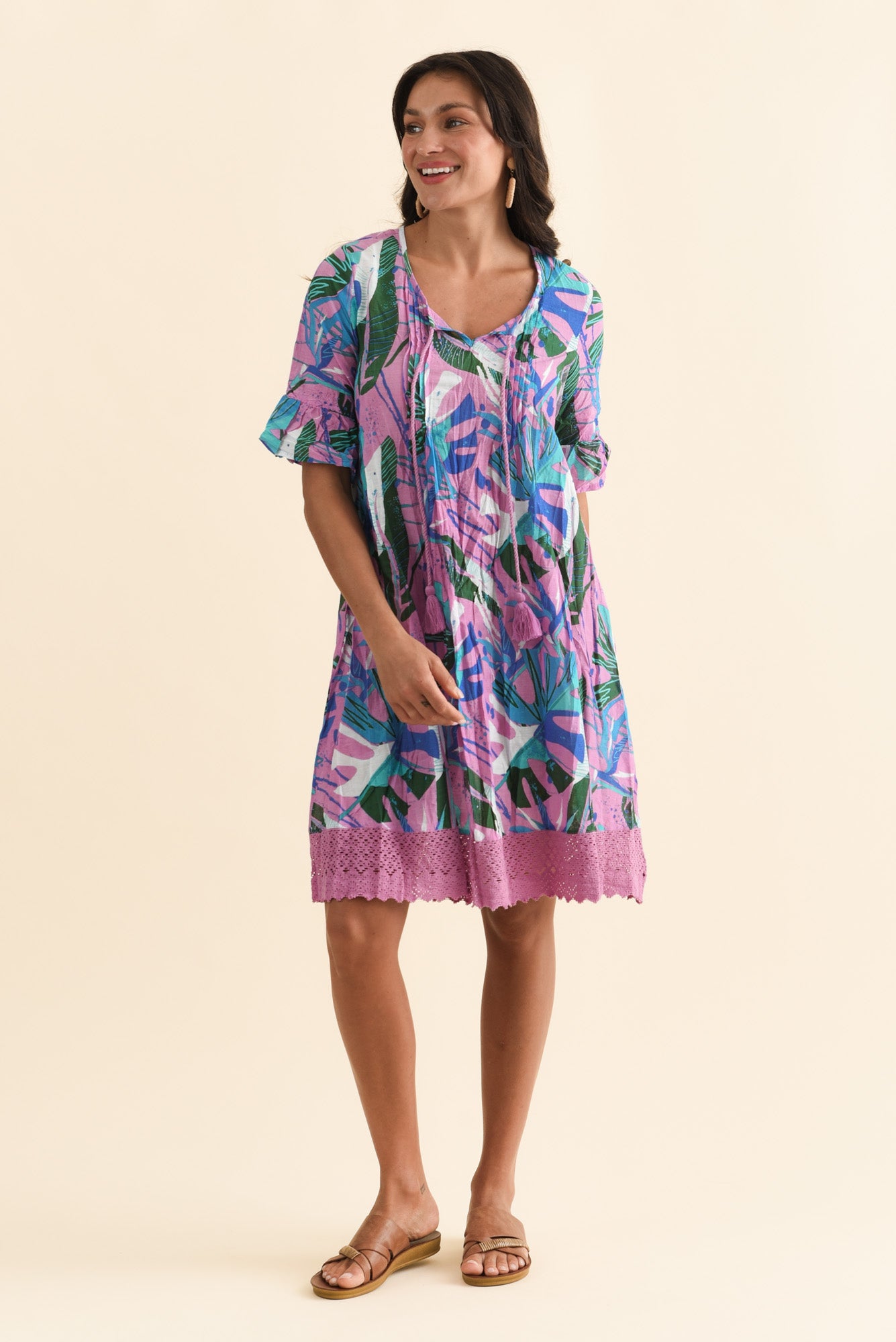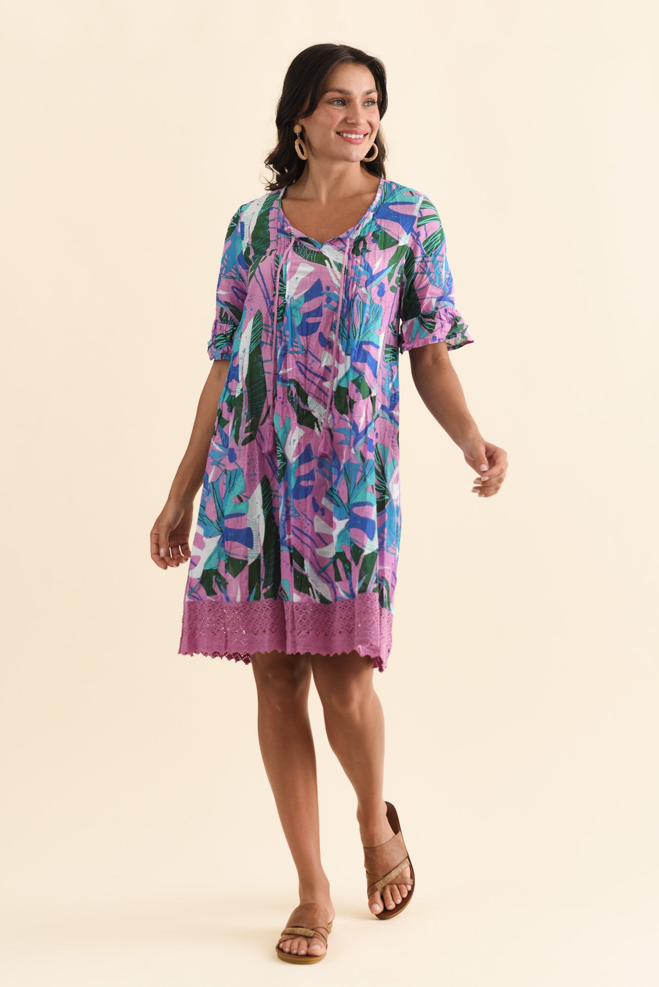 CAYMAN LILAC TROPICAL COTTON TUNIC DRESS