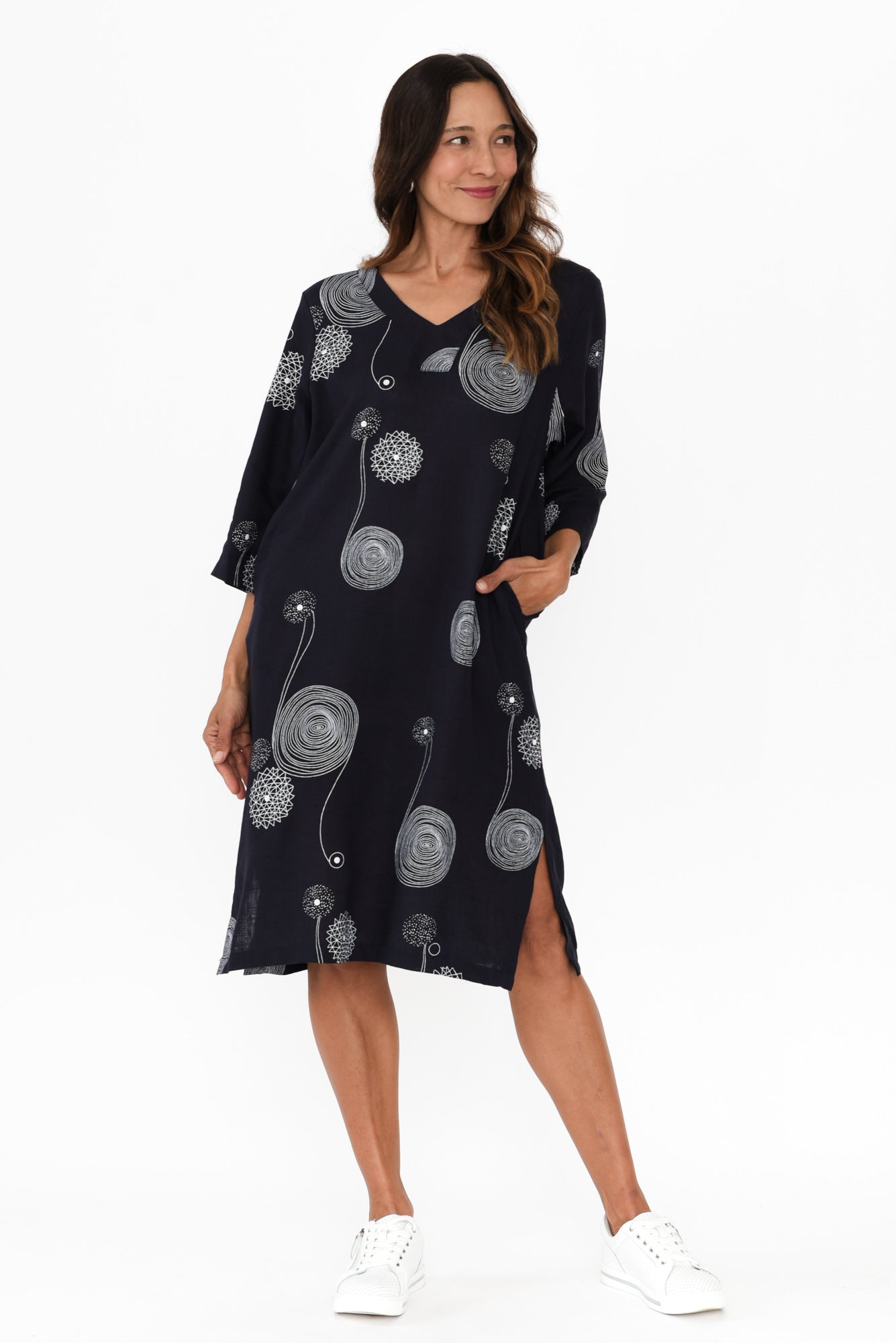 Celine Navy Swirl Linen Cotton Dress