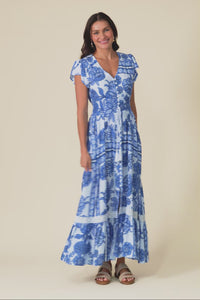 Chappelle Blue Bloom Button Dress
