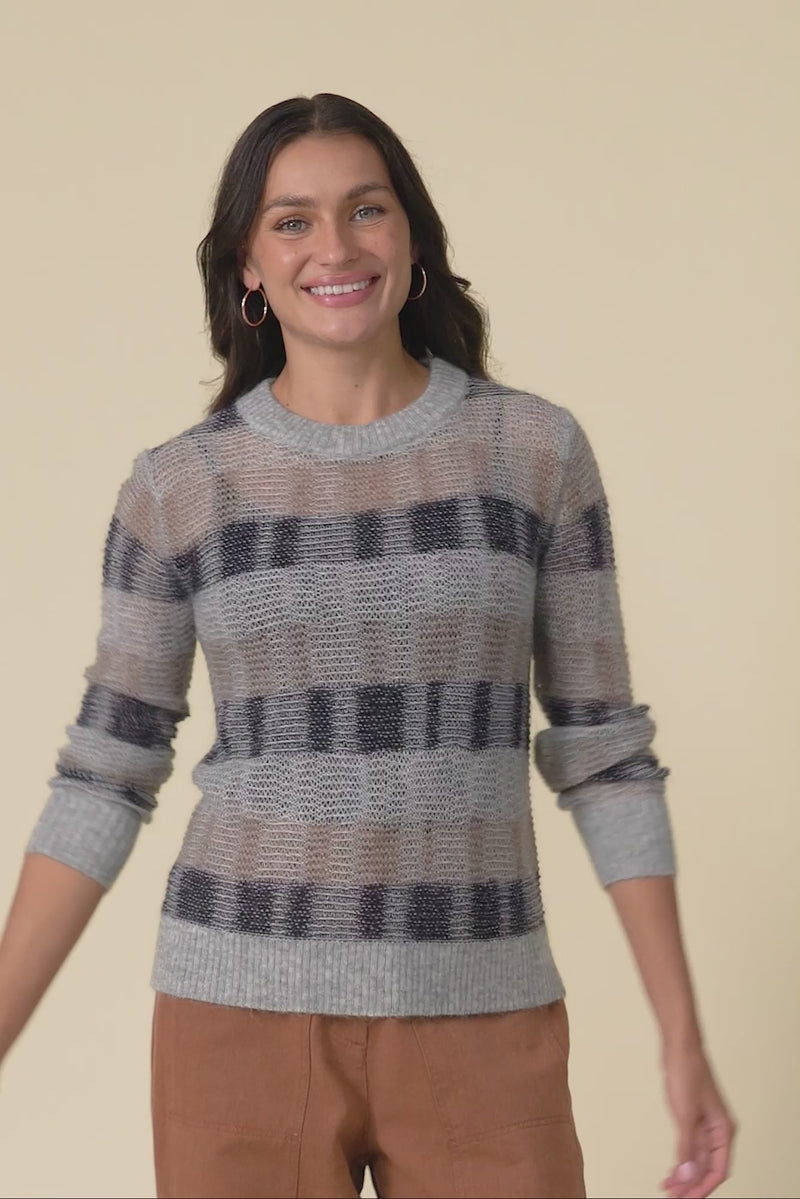 CIARA GREY STRIPE MOHAIR WOOL KNIT JUMPER