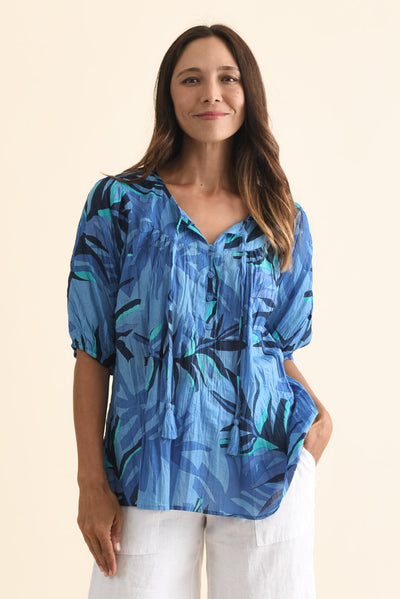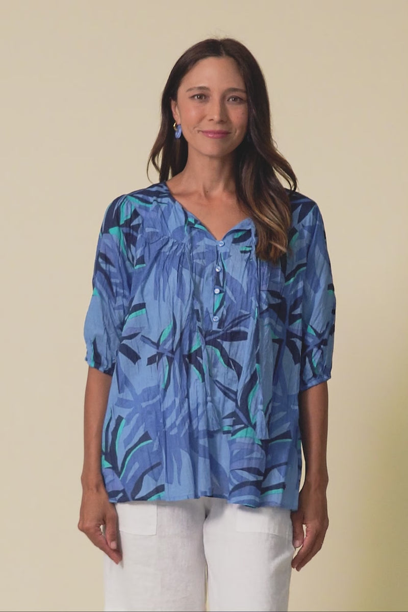 CLARIS BLUE LEAF CRINKLE COTTON TOP