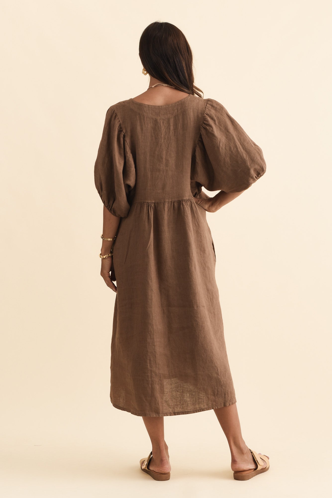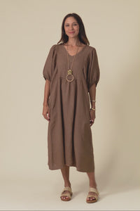 Claudine Chocolate Linen Pocket Dress