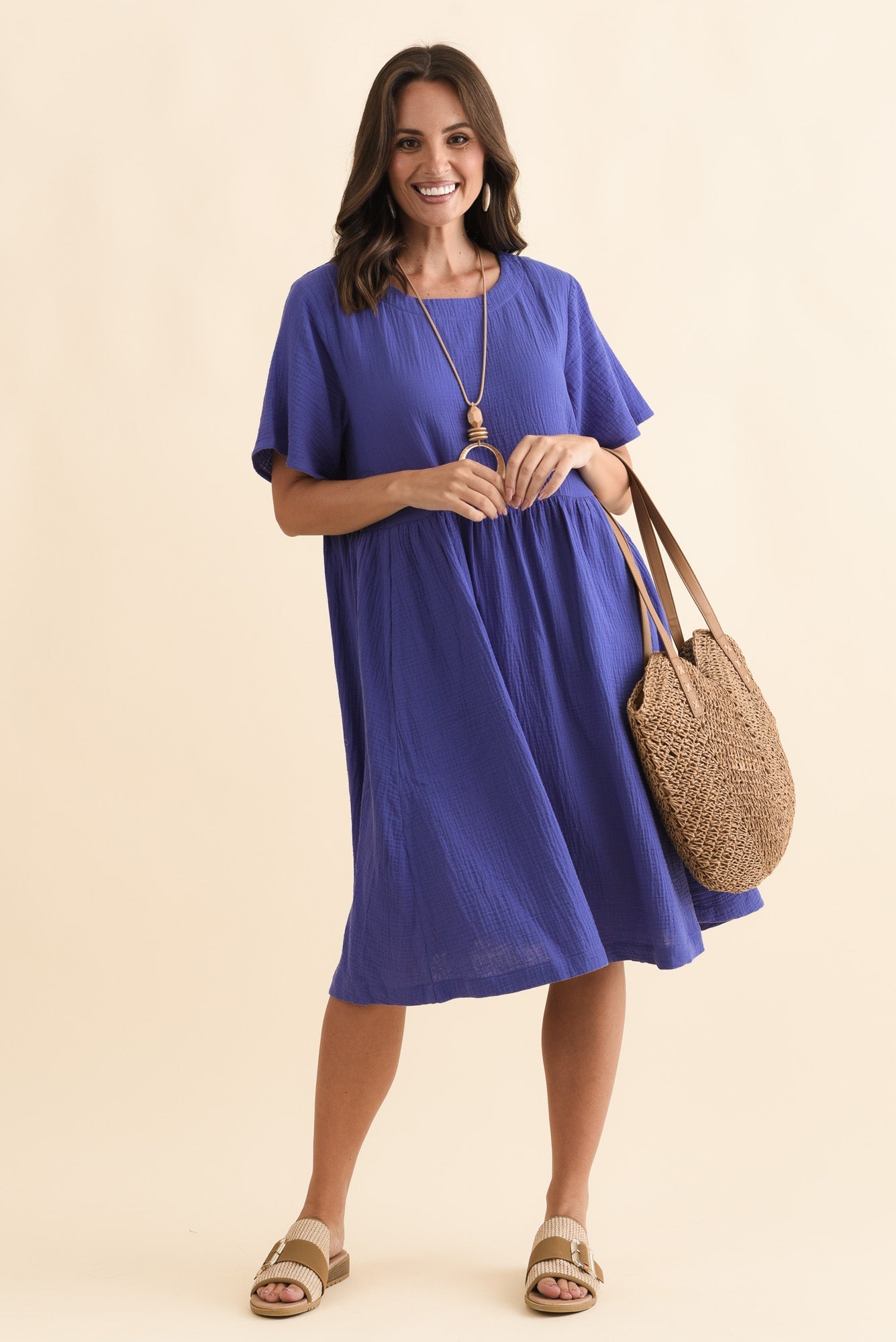 Cloud Gauze Purple Cotton Pocket Dress