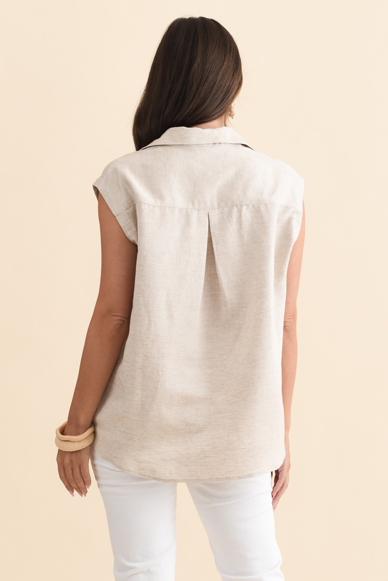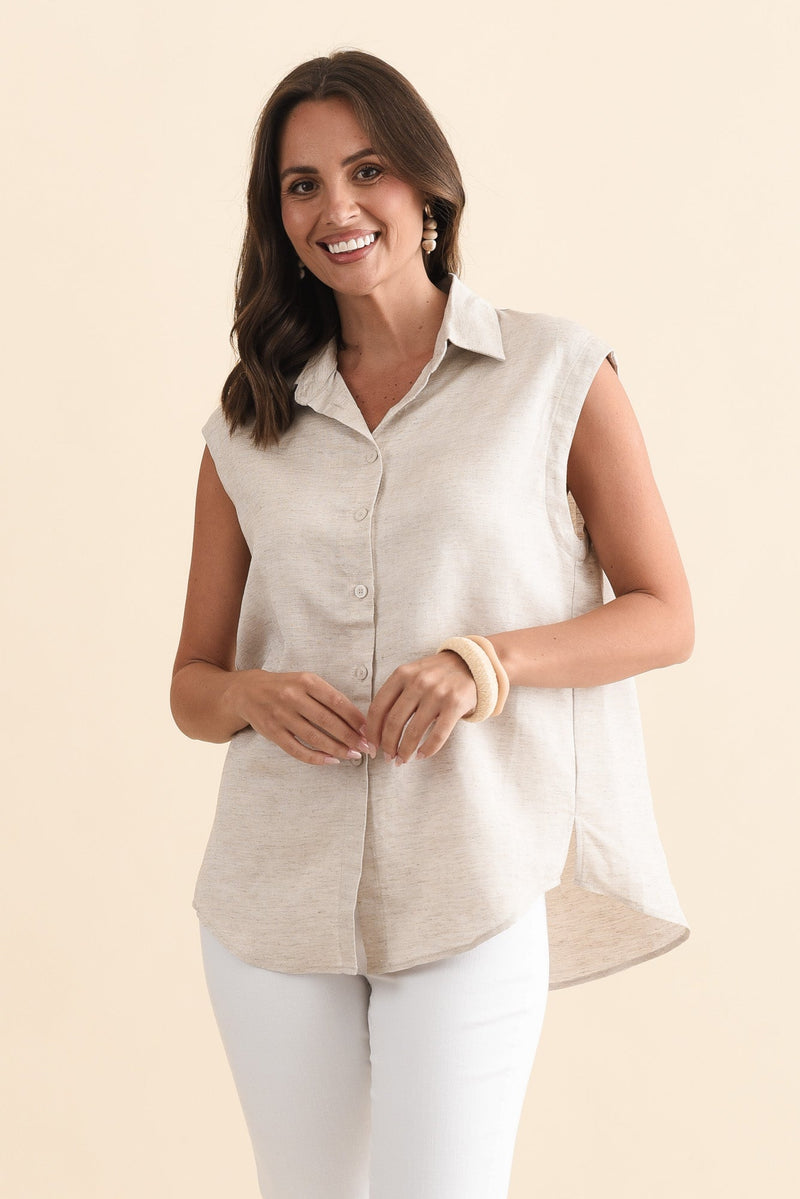 Corbin Natural Linen Blend Button Top