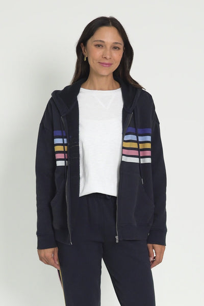 Cue Navy Stripe Zip Hooded Sweatshirt