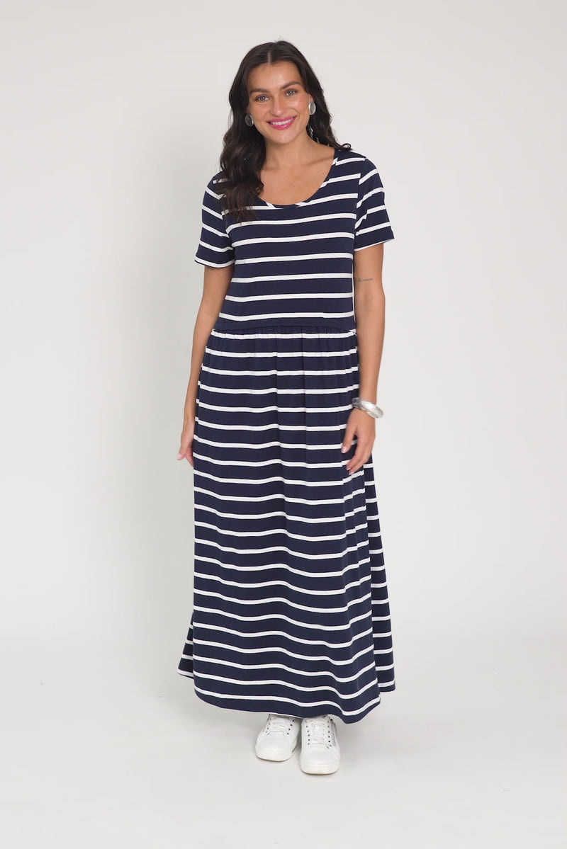 DEIDRA NAVY STRIPE COTTON POCKET DRESS