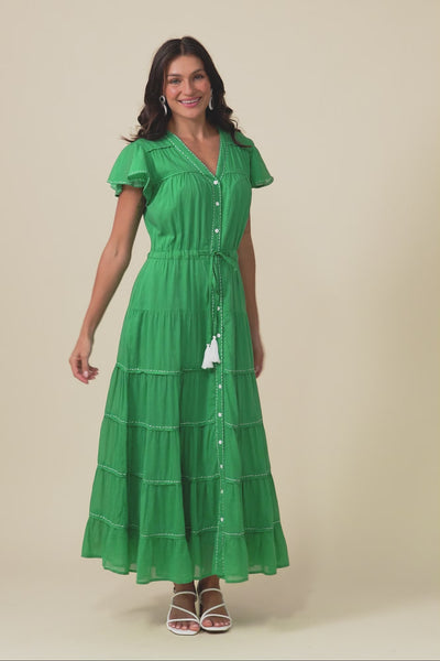 Delilah Green Cotton Tier Dress