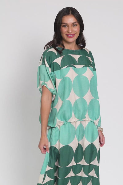 DOMINO AQUA SPOT LINEN BLEND TOP