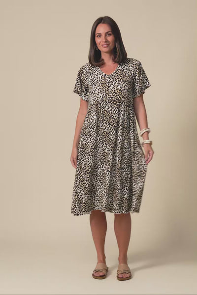 Donna Brown Cheetah Gathered Dress